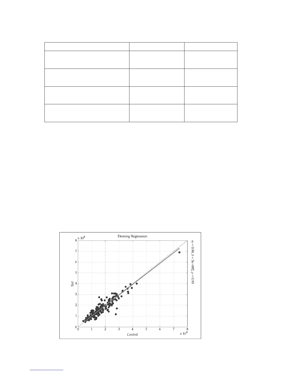 study. The Control axis is the ThinPrep 2000 slide’s count value, and the Test axis is the matching