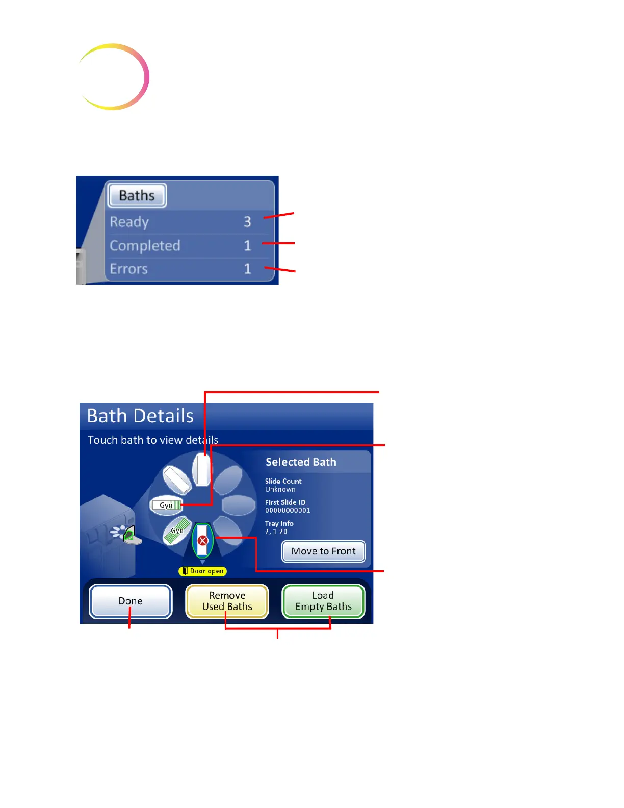 The baths pane shows how many fixative baths are on board and what condition they are in: ready,