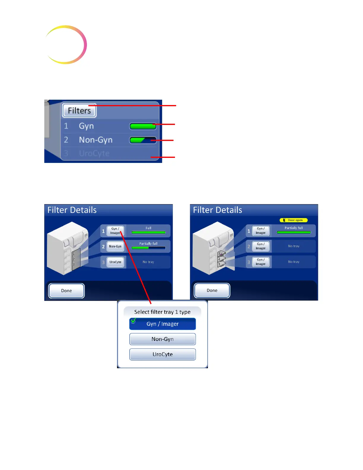 presence of filters in the tray. The status is “partial” after the system has used filters out of a tray. The