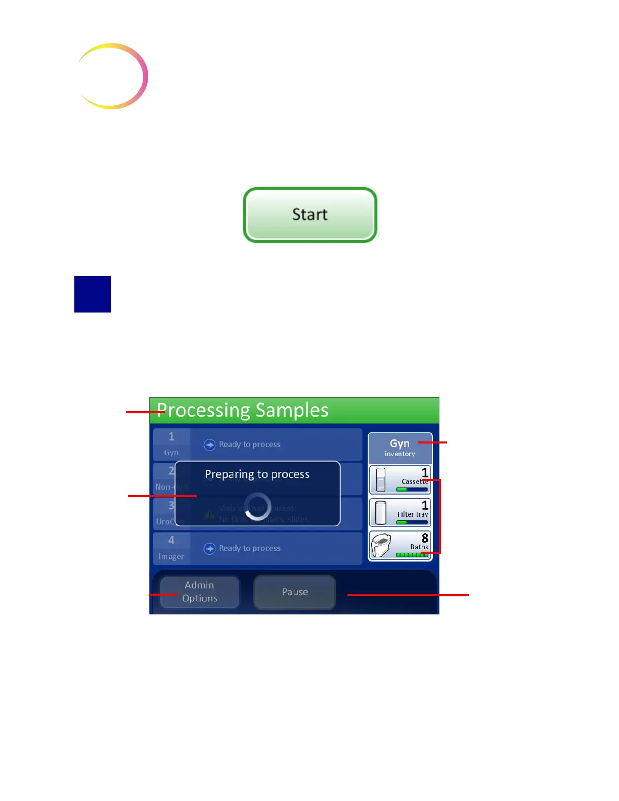 The display then transitions to the Processing Samples screen. The processor starts with the topmost