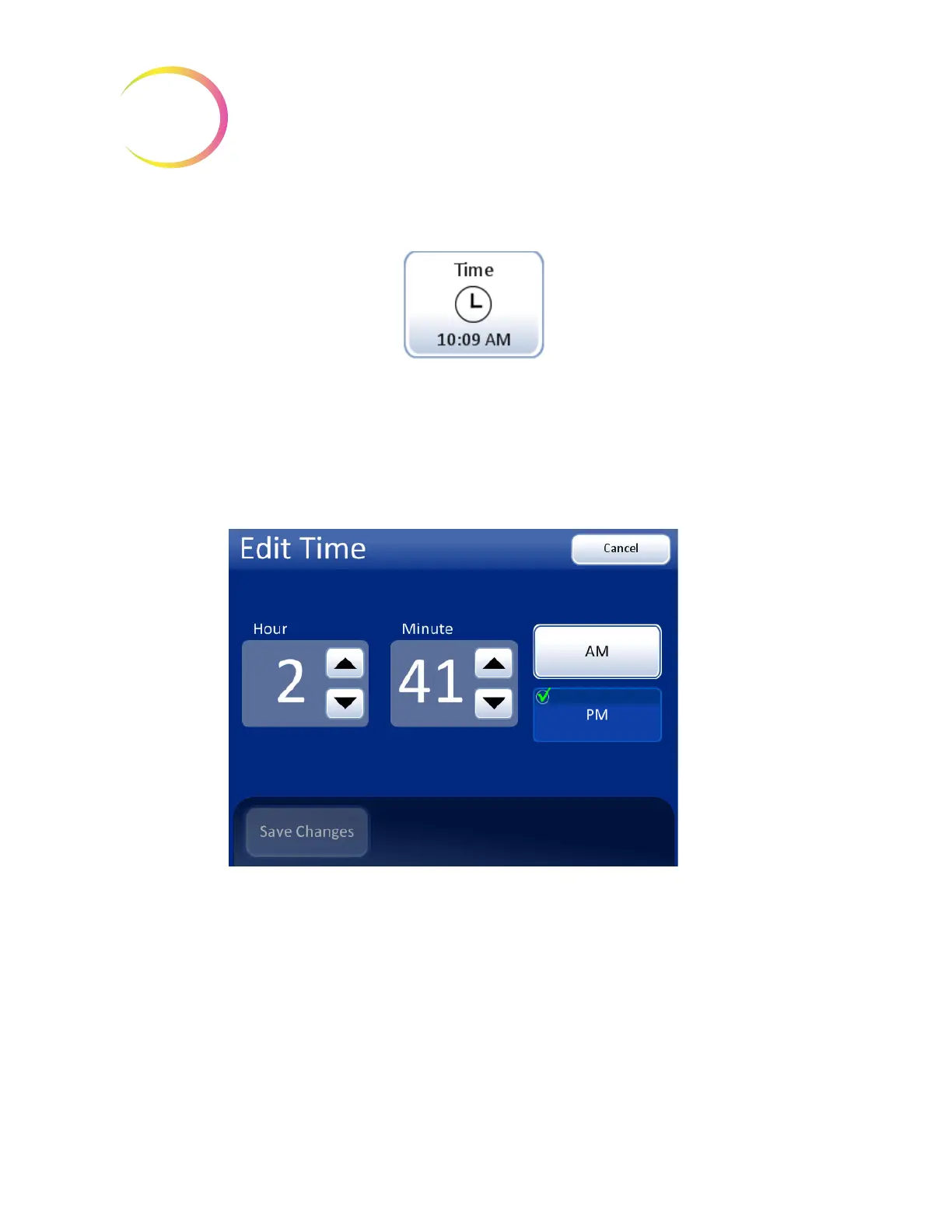 To change the time (hour, minute, meridian), touch the up/down button for that field until the