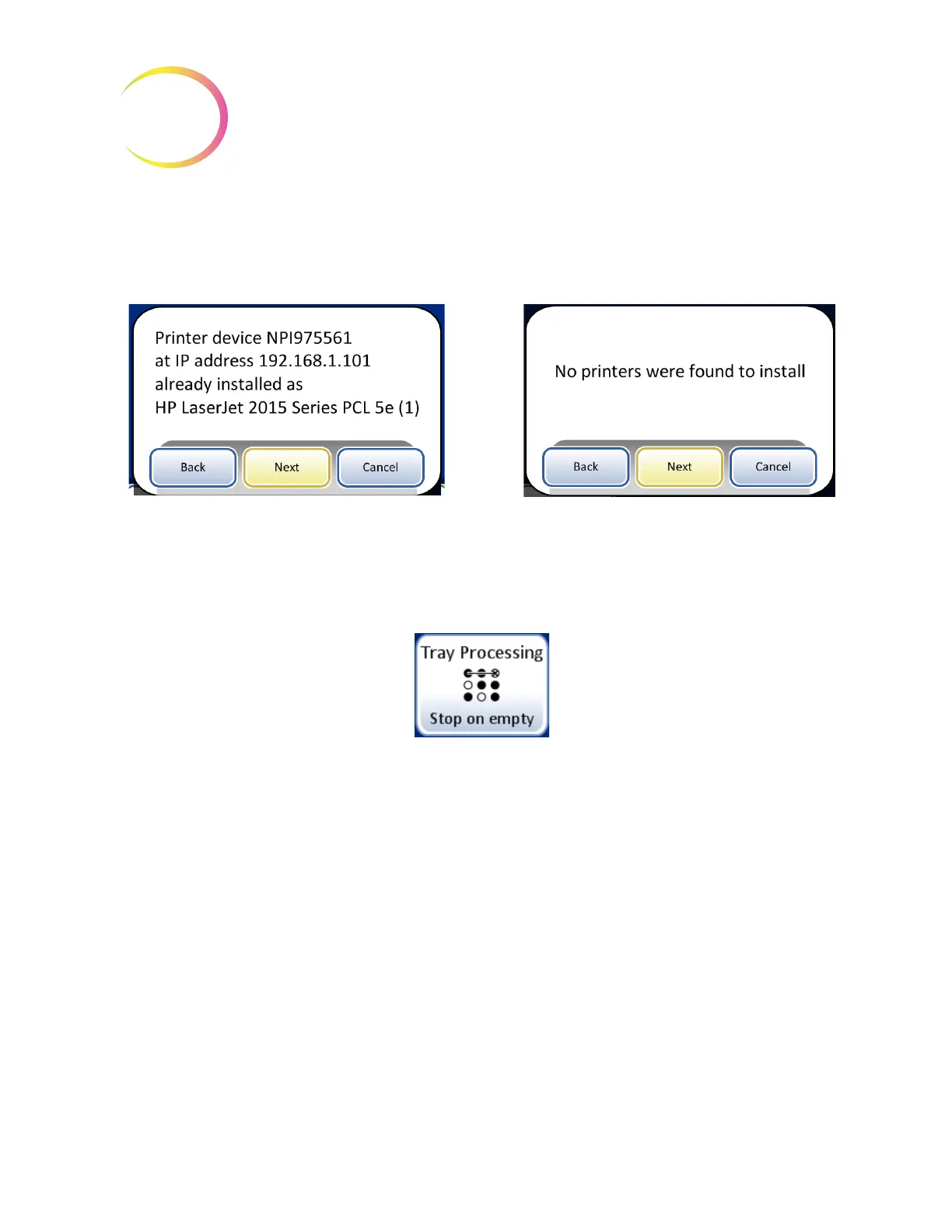 presence and connect to it at the time of setup. If a printer is not installed, or unavailable to the