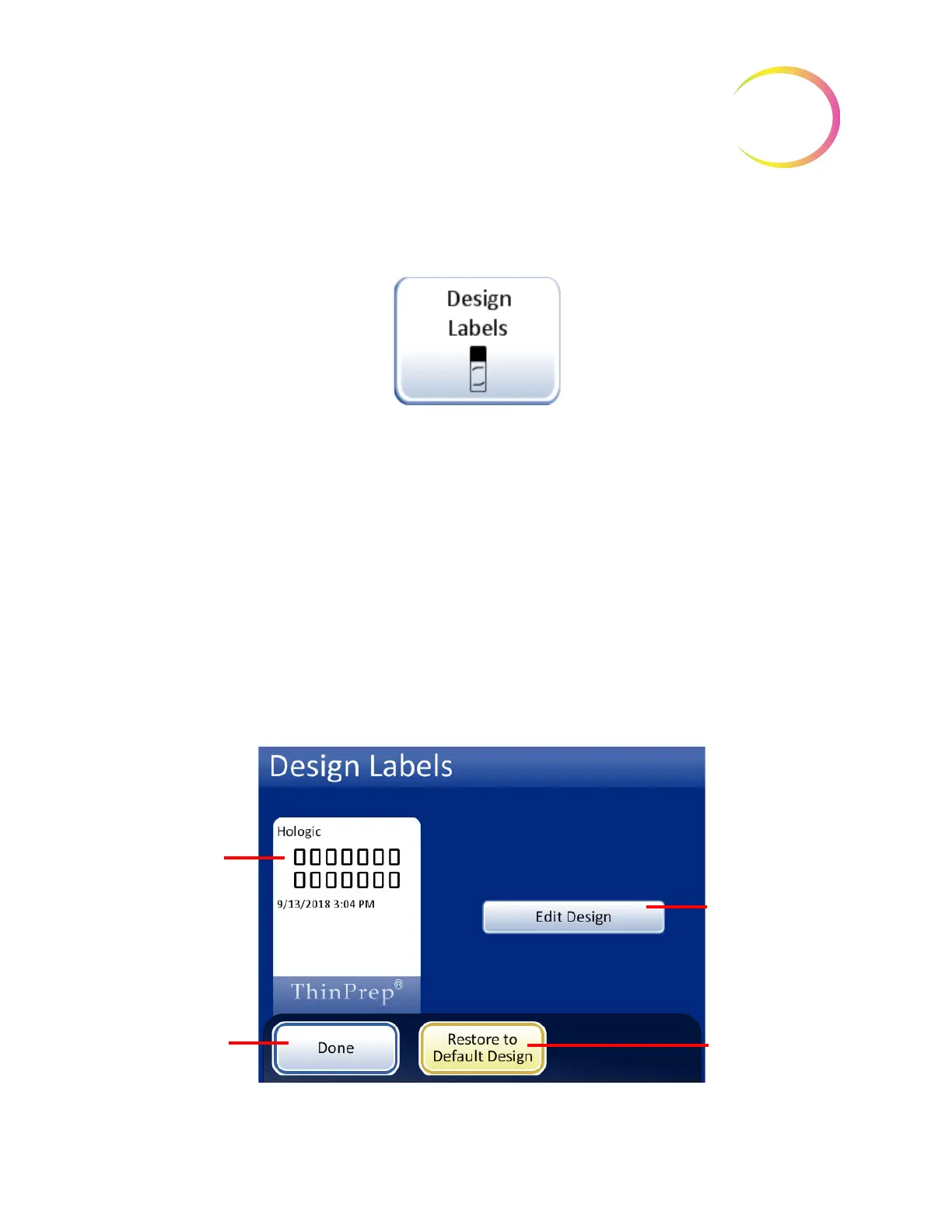 The label design persists until the operator makes any changes. There is a button to reset the design