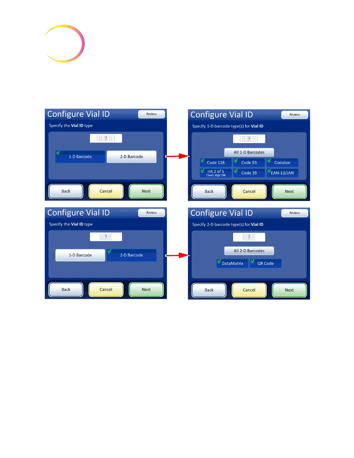 D barcode or 2-D barcode, and then select the type(s) of barcodes used for vial IDs at your facility.