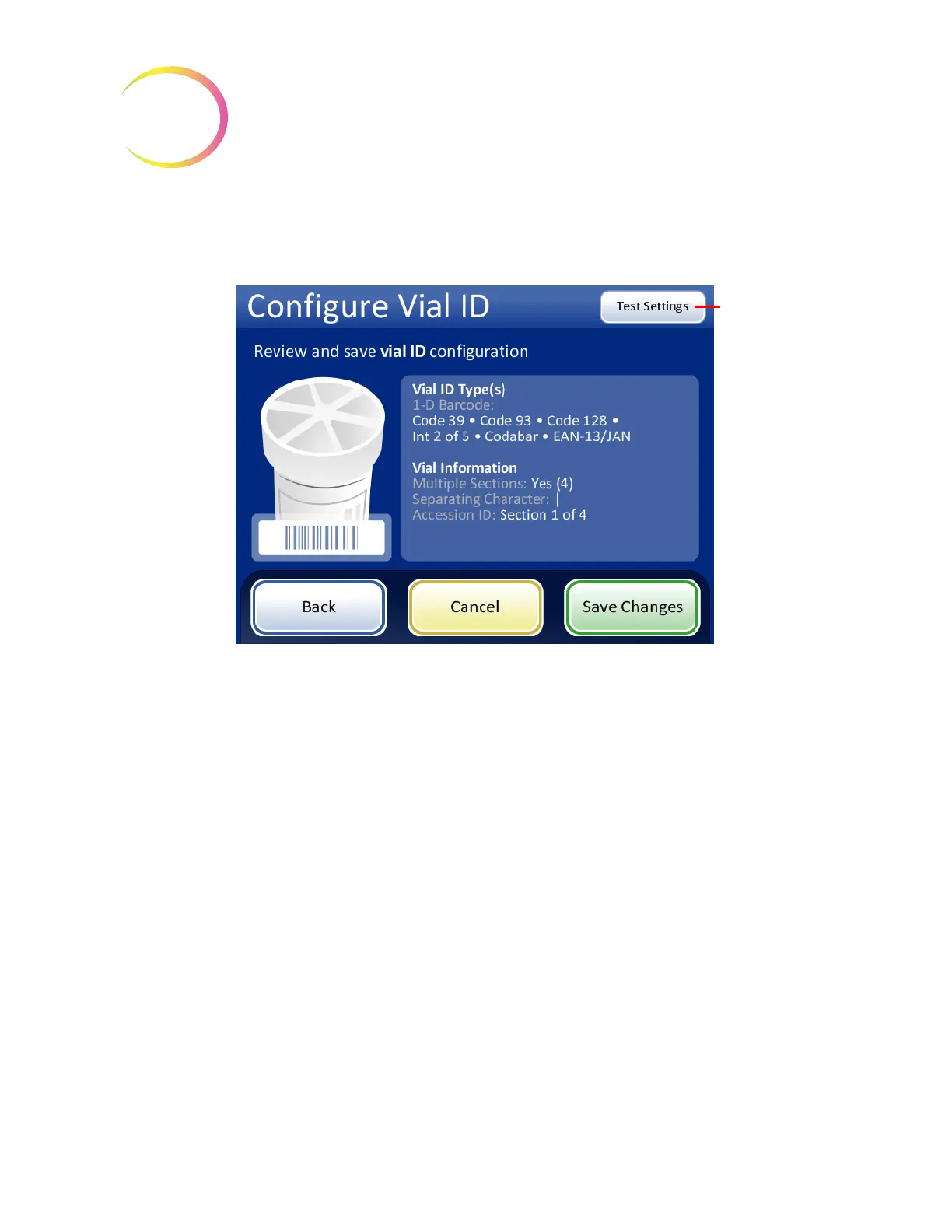 Review the summary of the vial ID configuration. To save the configuration, press