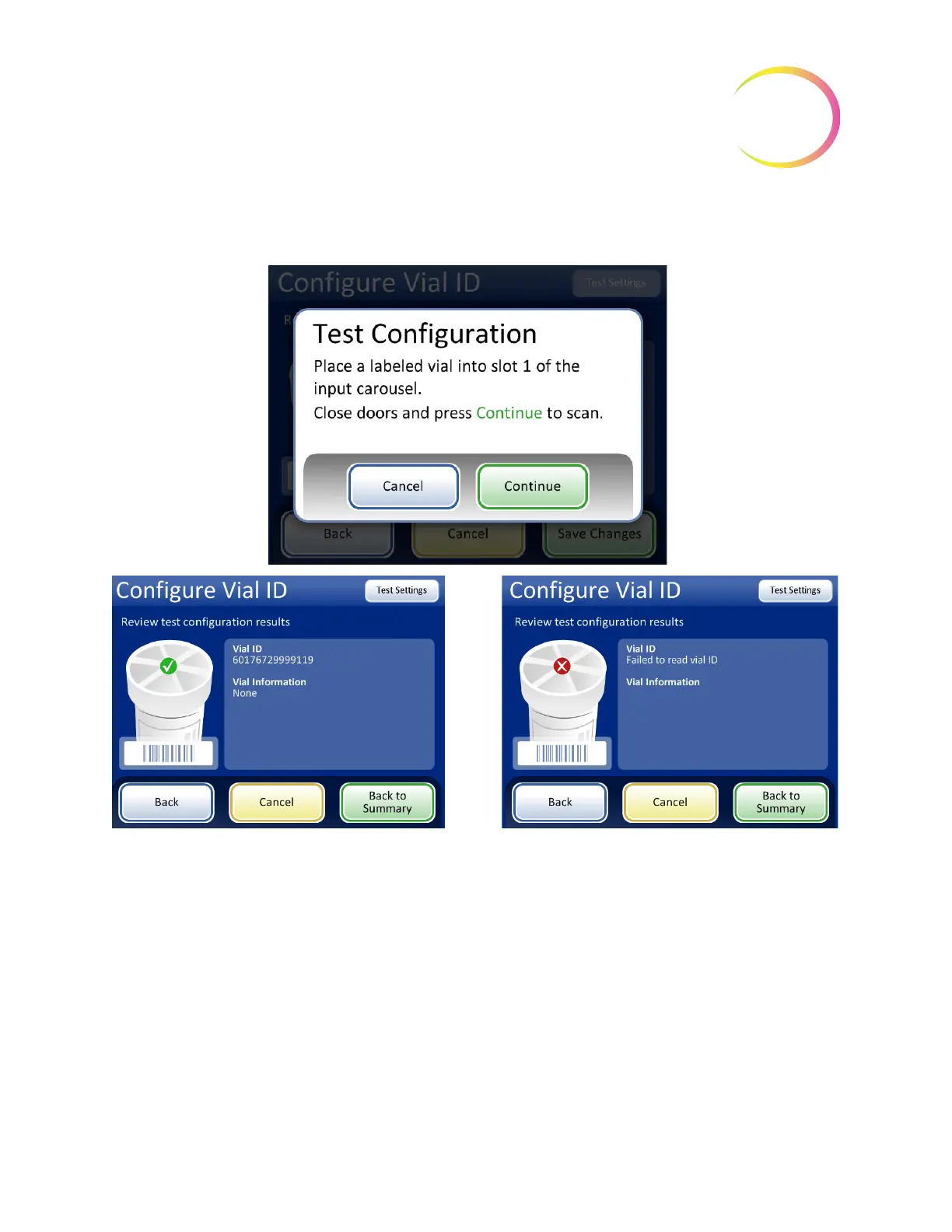 When the vial ID is properly configured, return to the summary screen and save the changes.
