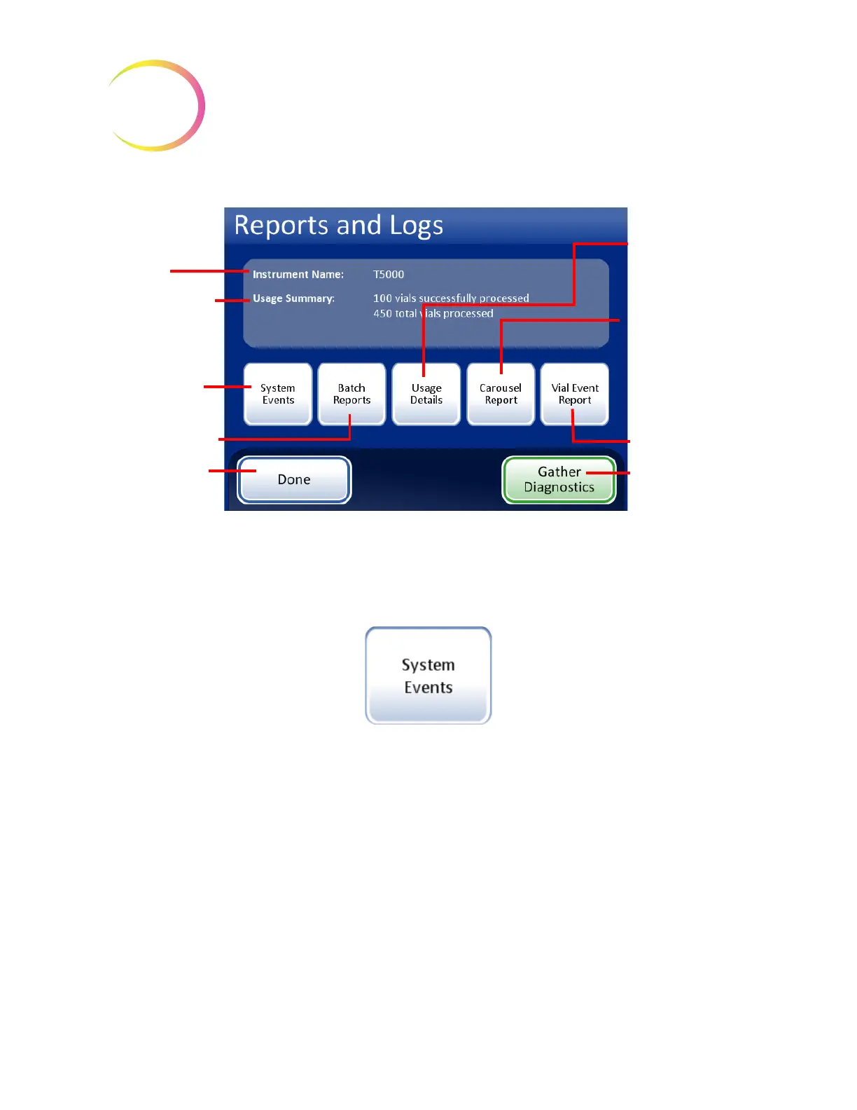 The System Events screen displays all of the error conditions encountered during sample processing.