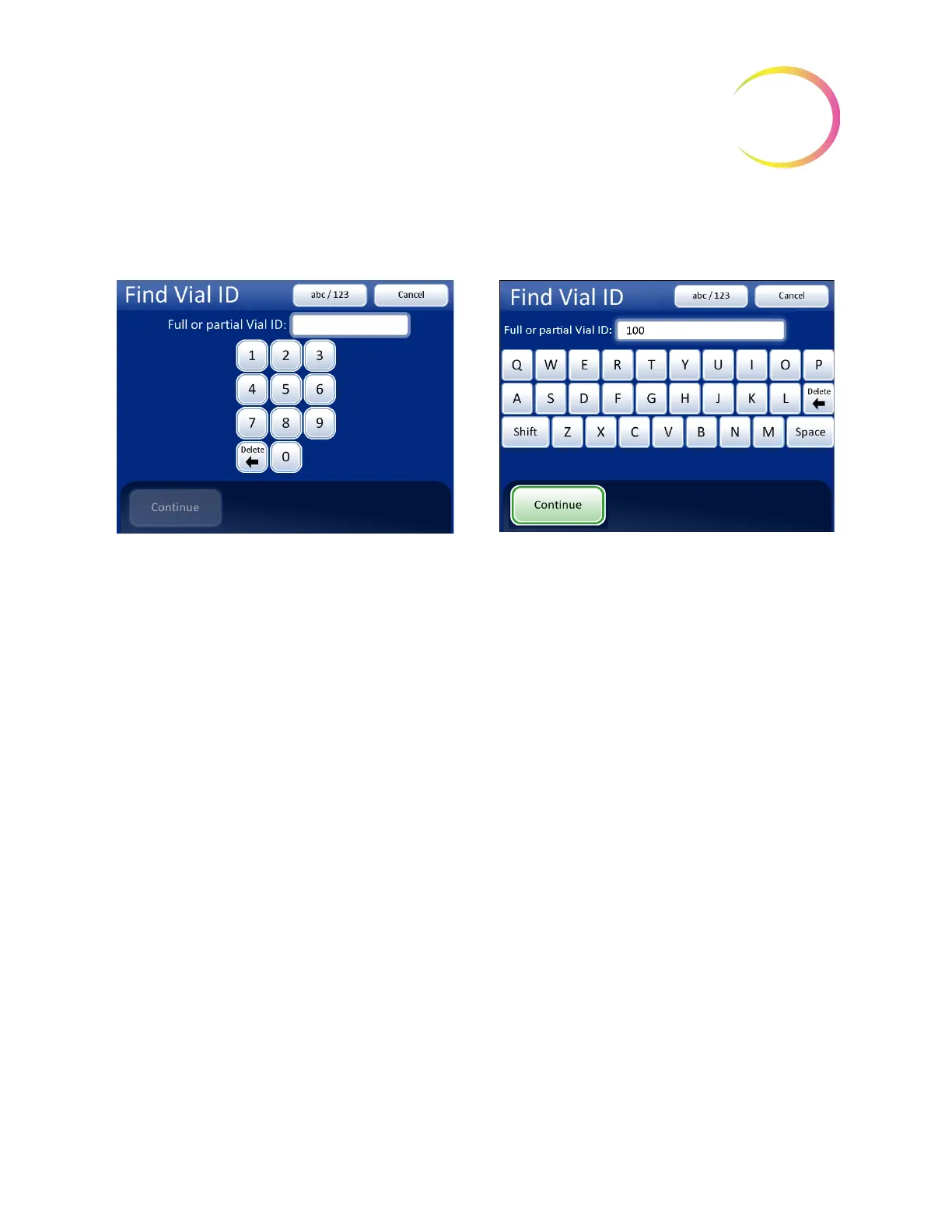 Figure 6-88 Enter Full or Partial Vial ID