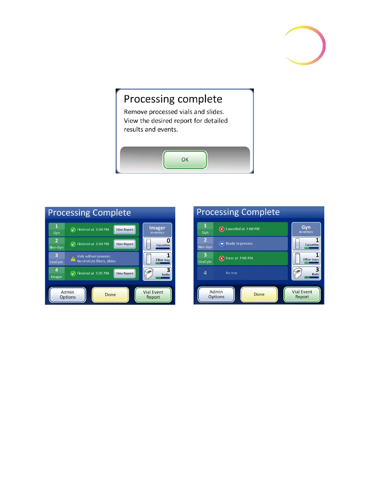 Figure 7-17 Examples of Processing Complete Screens