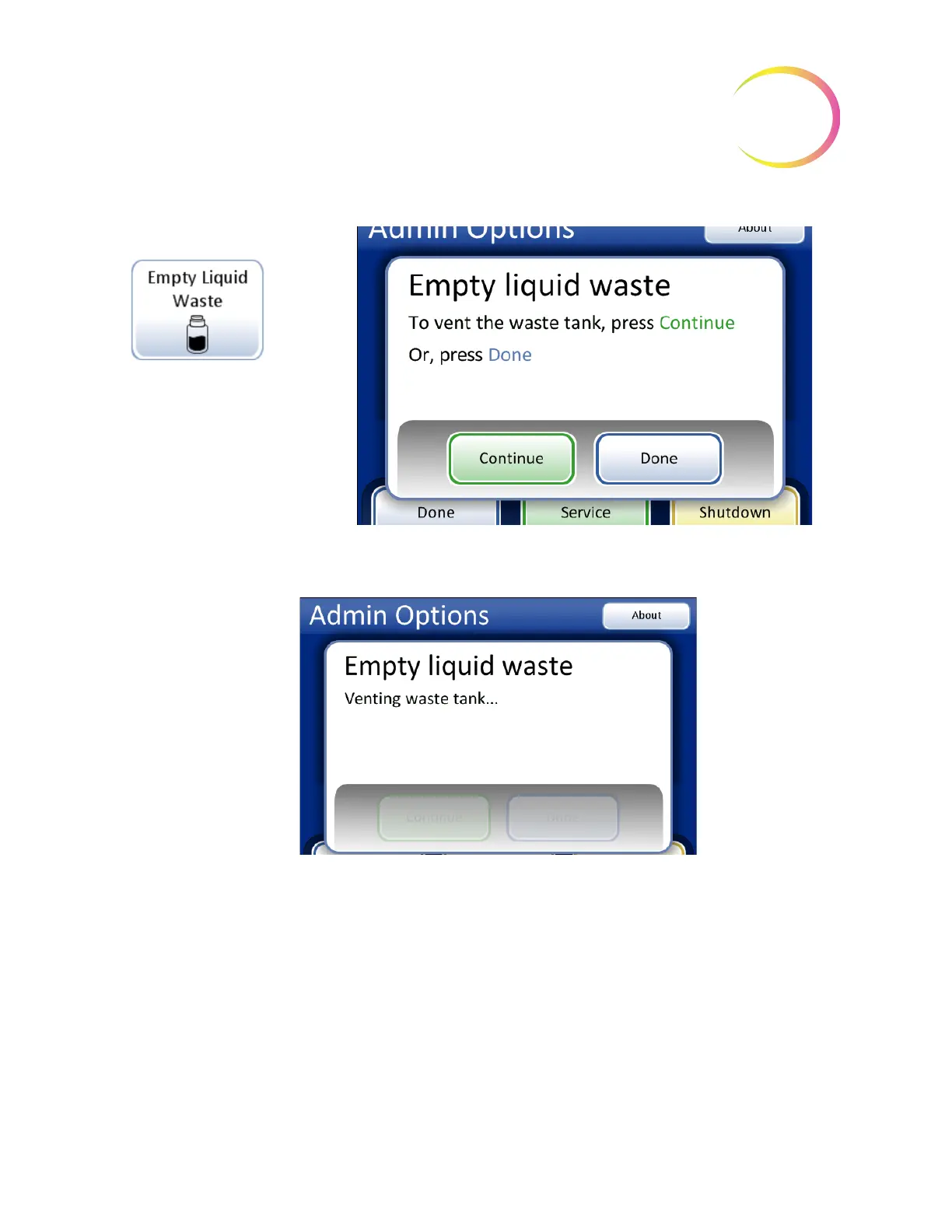The system can be heard to vent, which depressurizes the waste bottle. It takes about 10 seconds.