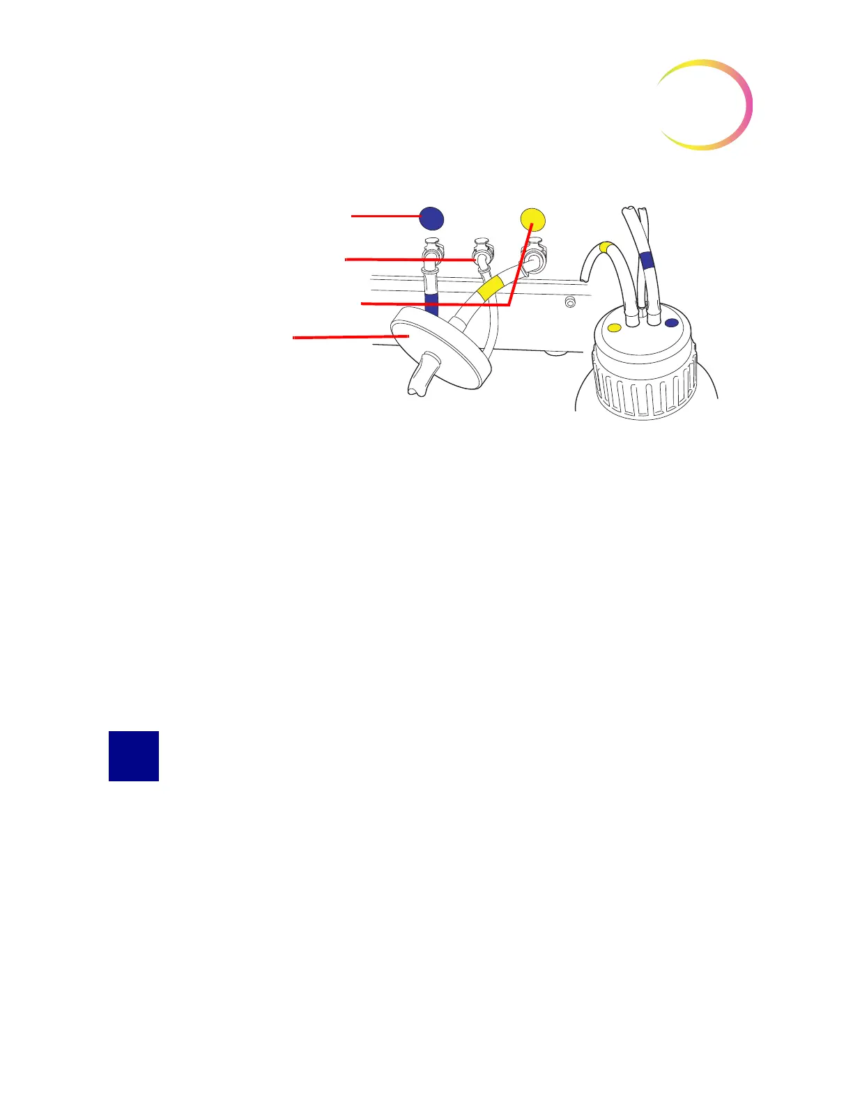 4. Connect the color-coded waste tubing connectors to the corresponding connectors located in
