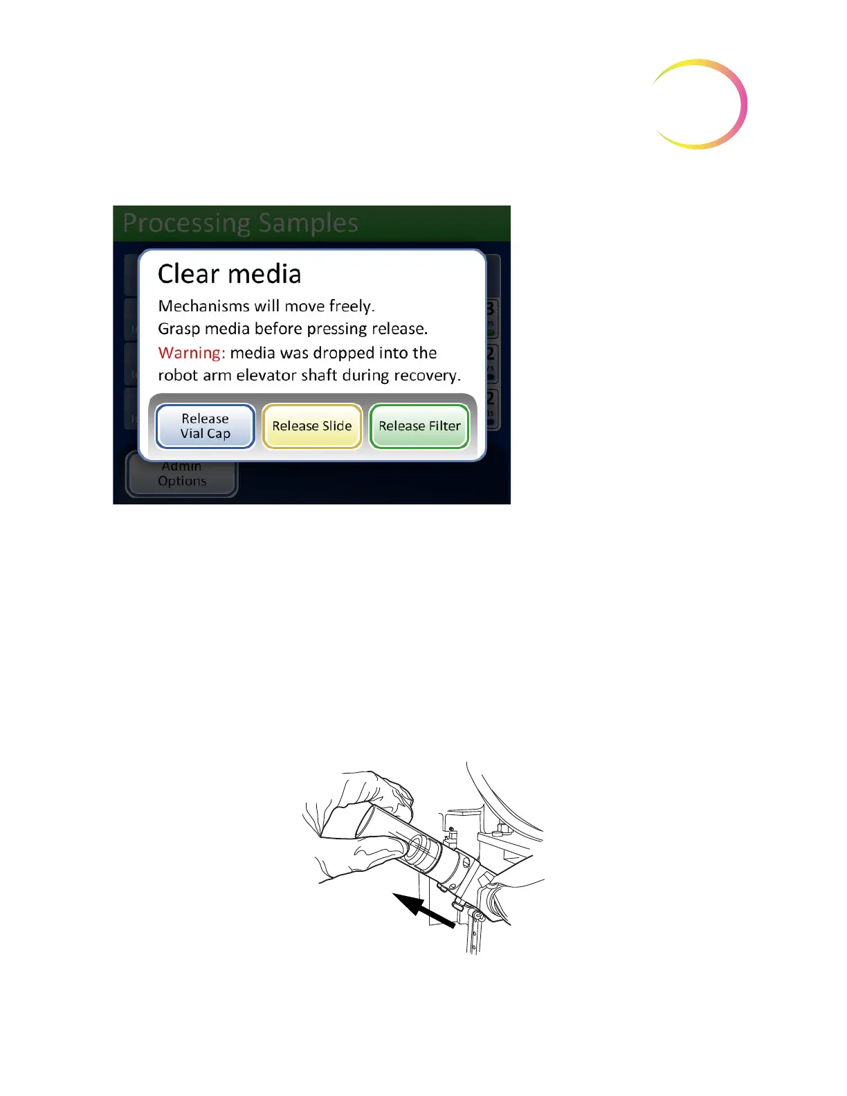 It may be difficult to view and reach the filter or vial cap. Gently slide the filter/vial transport arm to