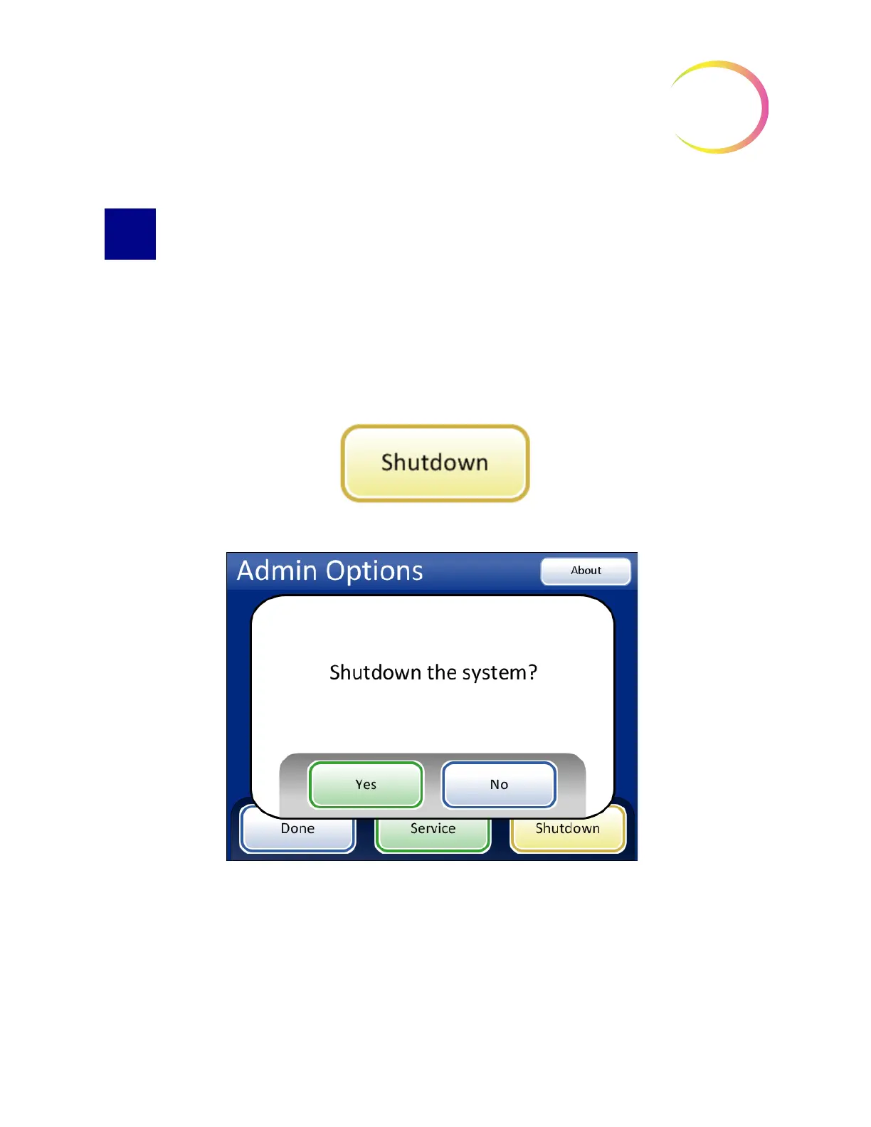 system shutdown. Wait for the application to turn off (wait until the touch screen interface goes