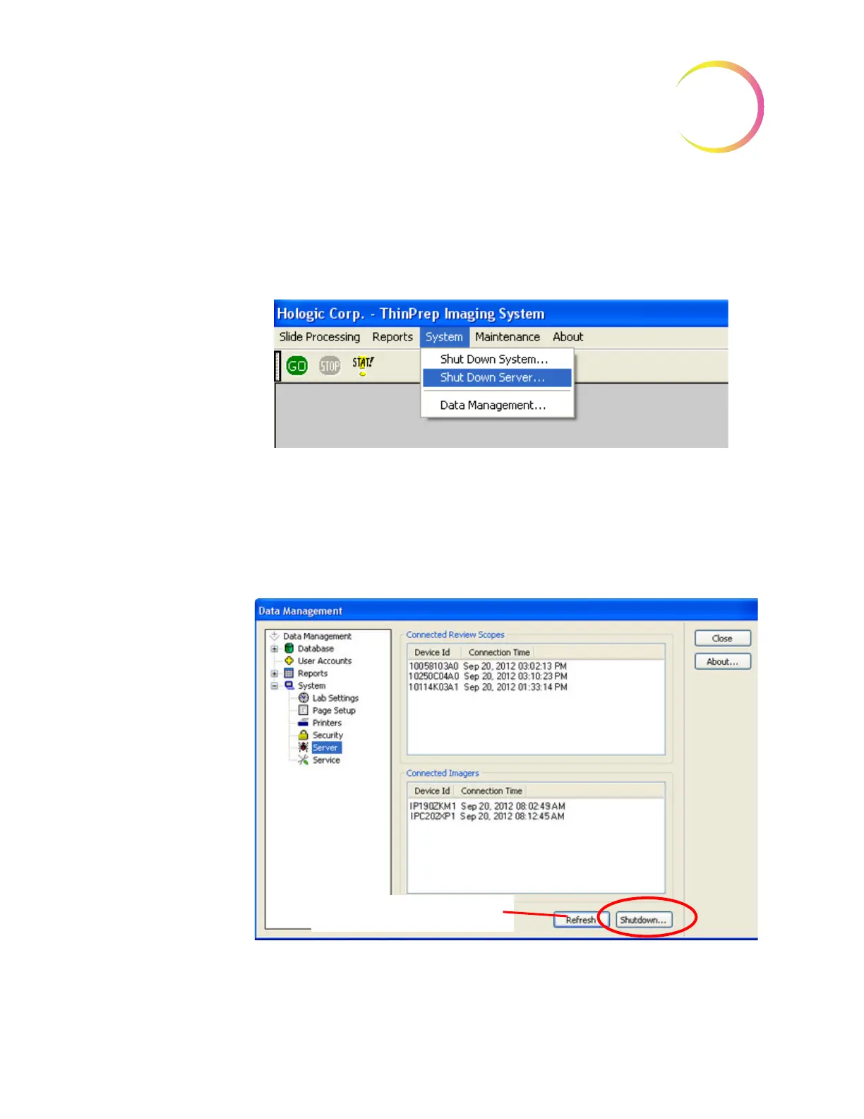 Figure 4-9 Select Shut Down Server