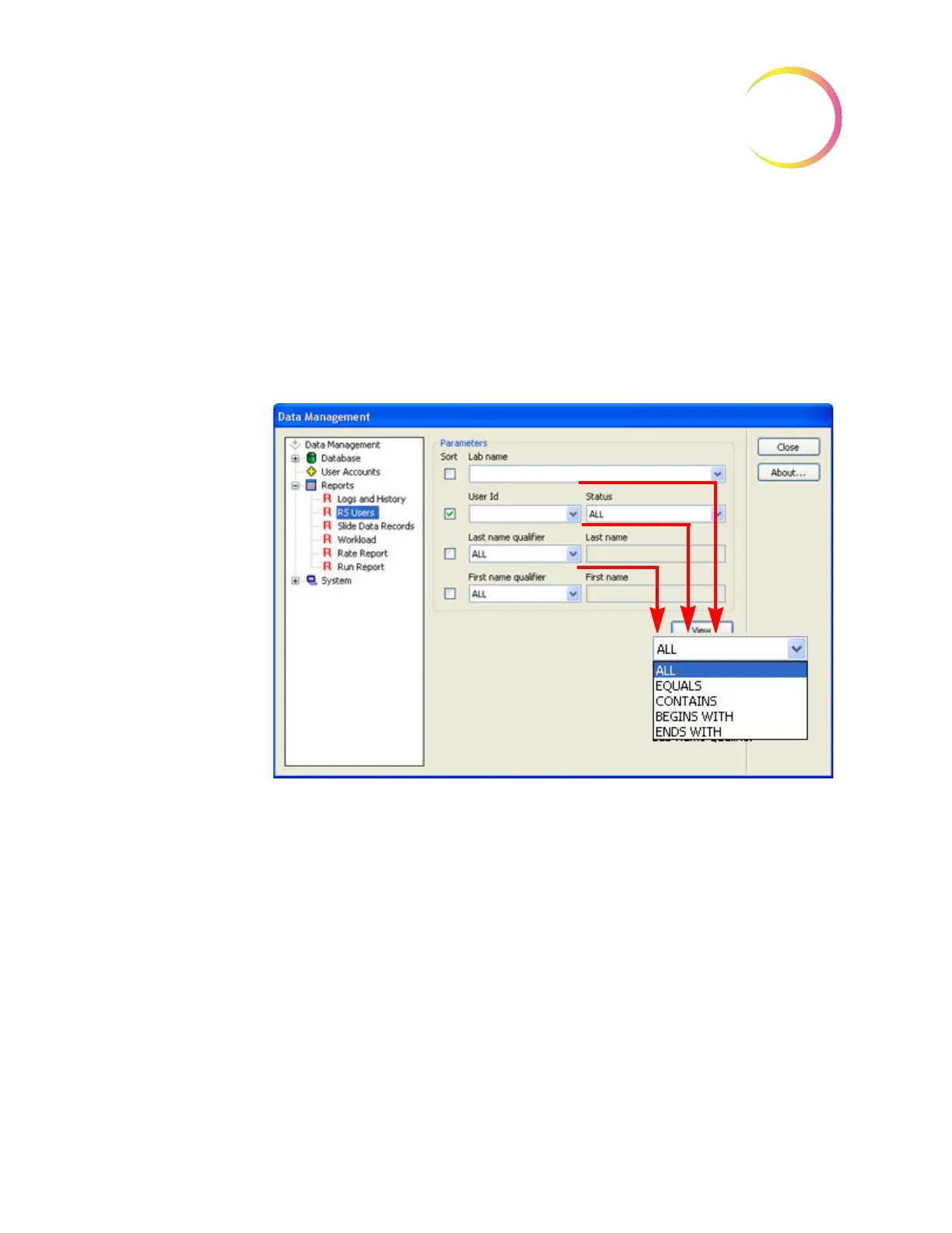 may be sorted by all operators, or by first name, last name or lab name.
