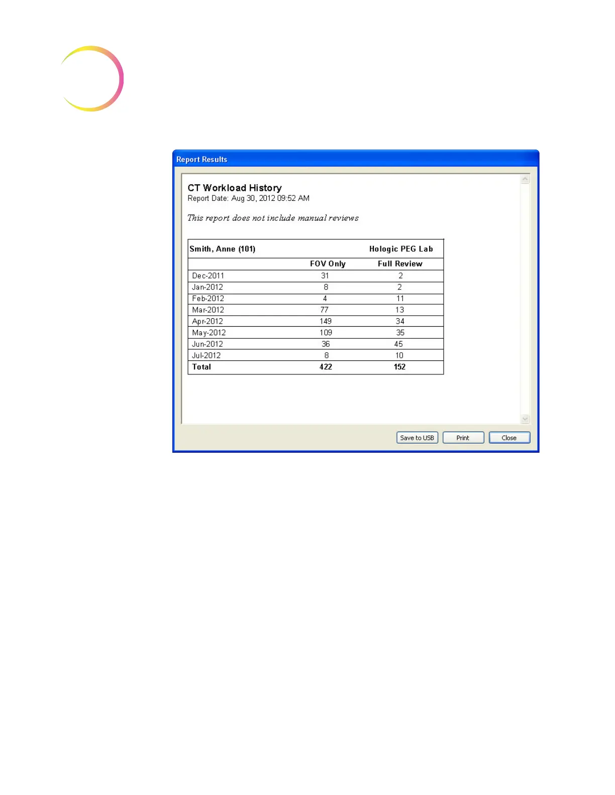 The tally of slides screened in the time frame selected is broken into FOV (field