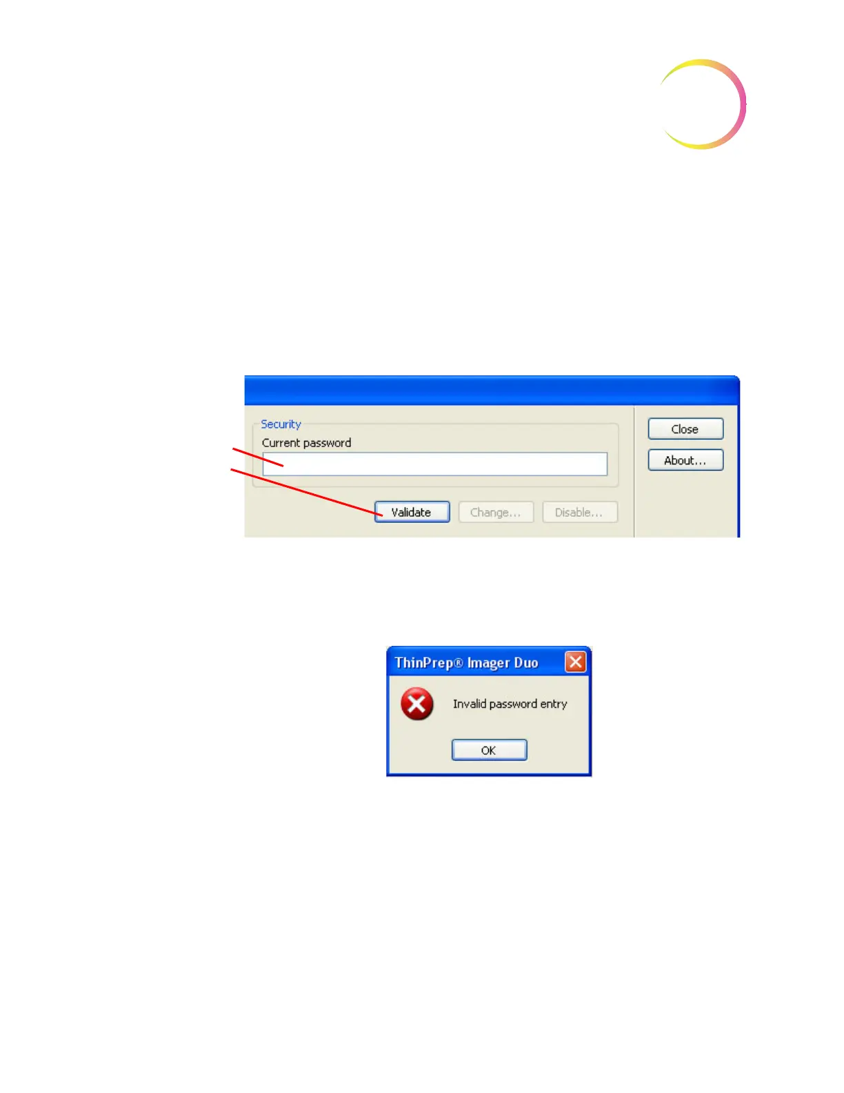 If the password entered was not correct, an Invalid password entry box is dis-