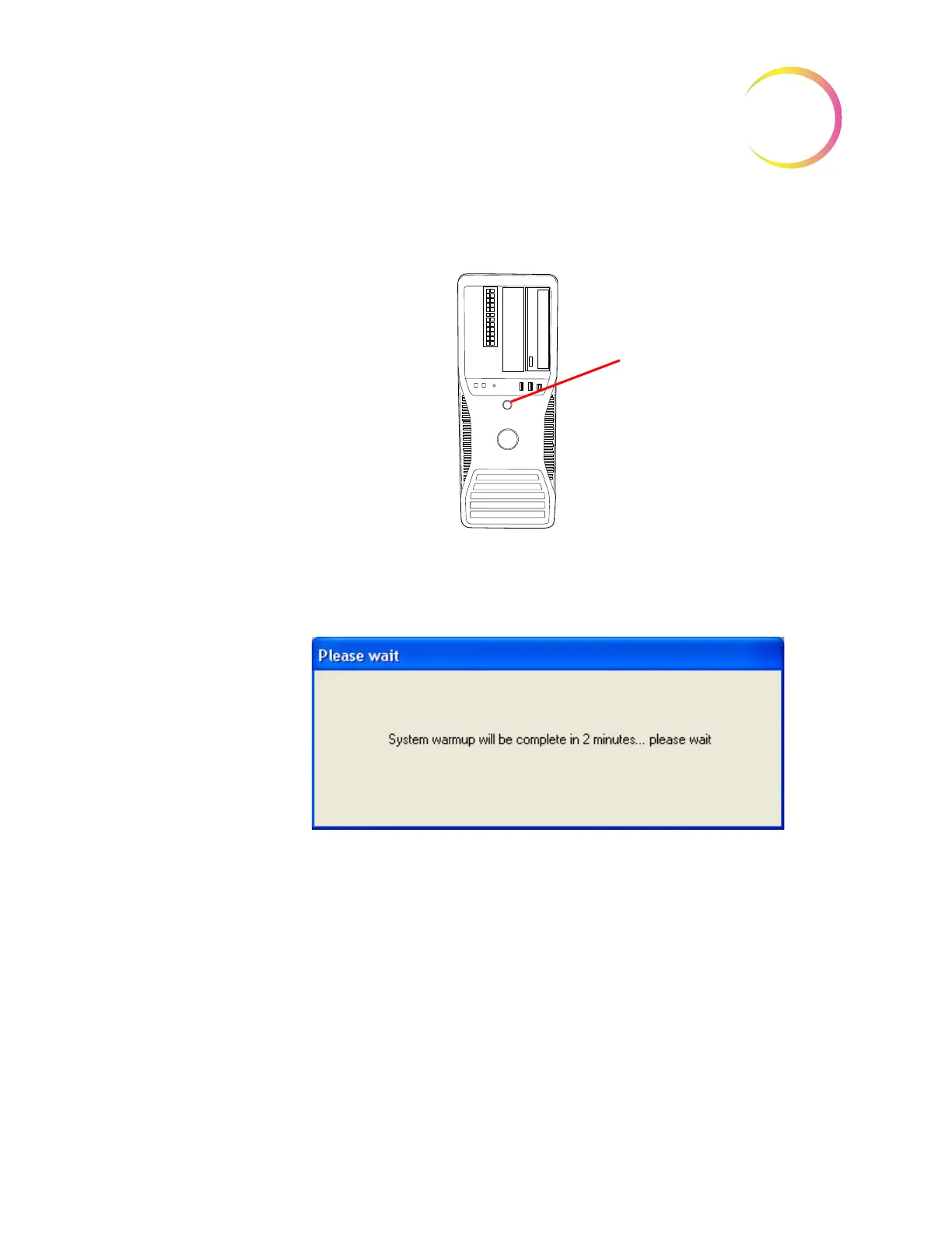 6. At the Monitor, observe that the message “System warmup will be complete
