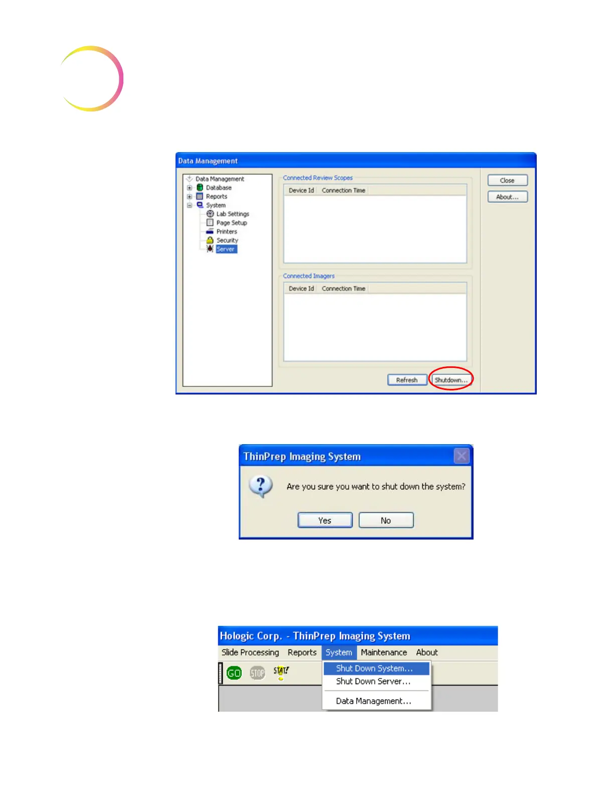 1. To power off the Image Processor, at the user interface, use the mouse to