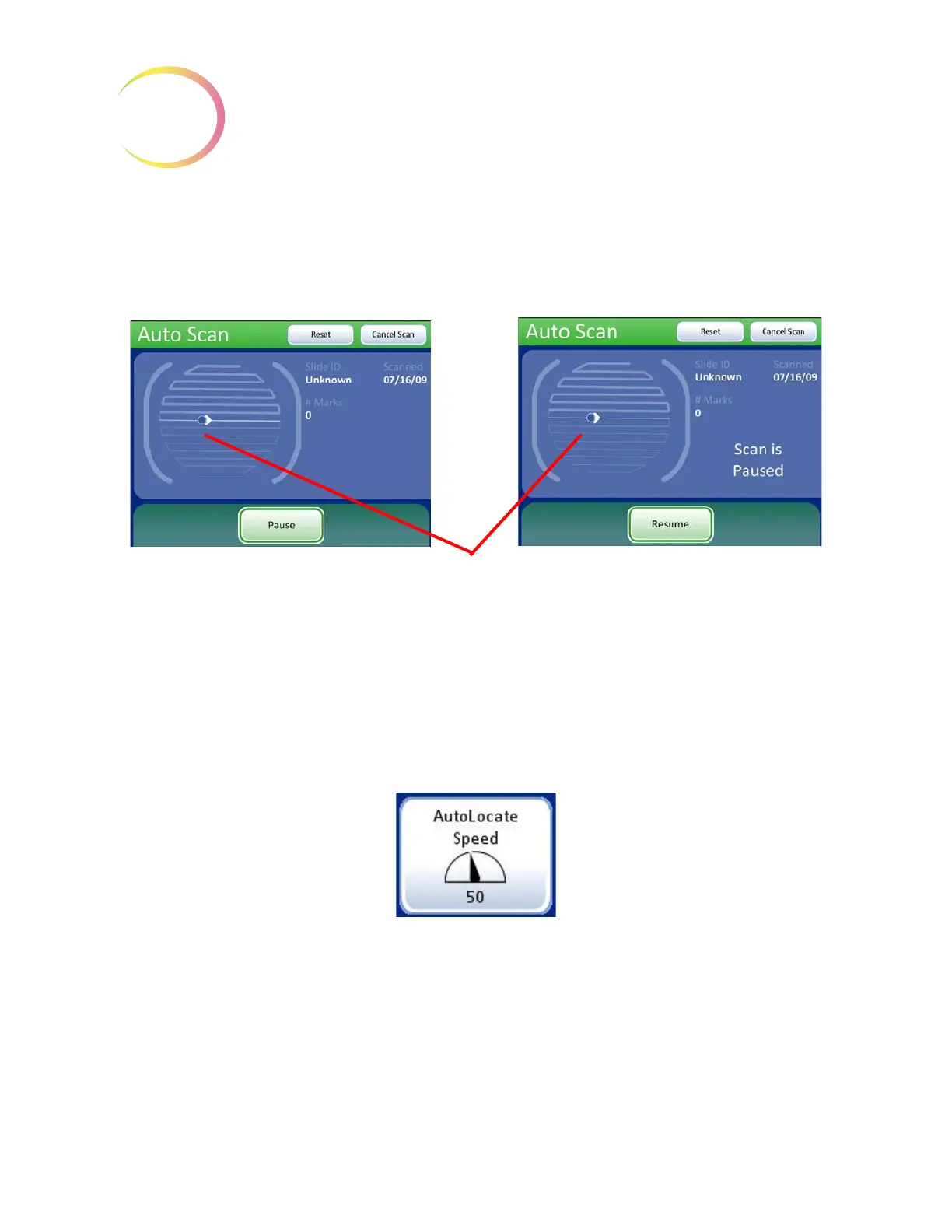 The Auto Locate Speed setting adjusts how quickly the stage moves from field to field during
