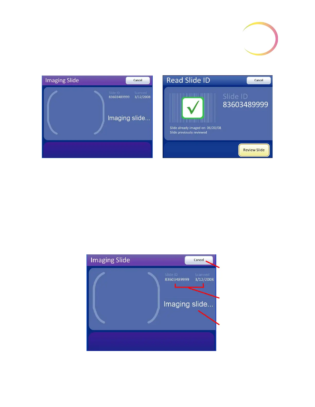 not been reviewed. In either case, the options are to review the slide or cancel.