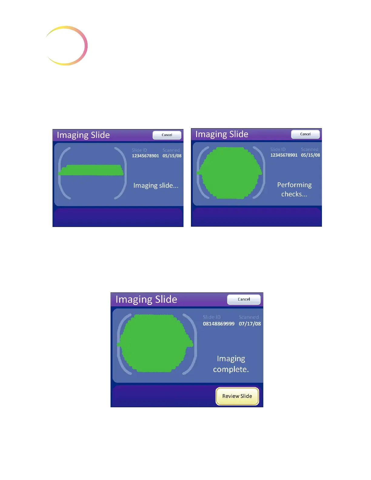 Do not remove the slide from the stage during imaging. To cancel imaging, press the