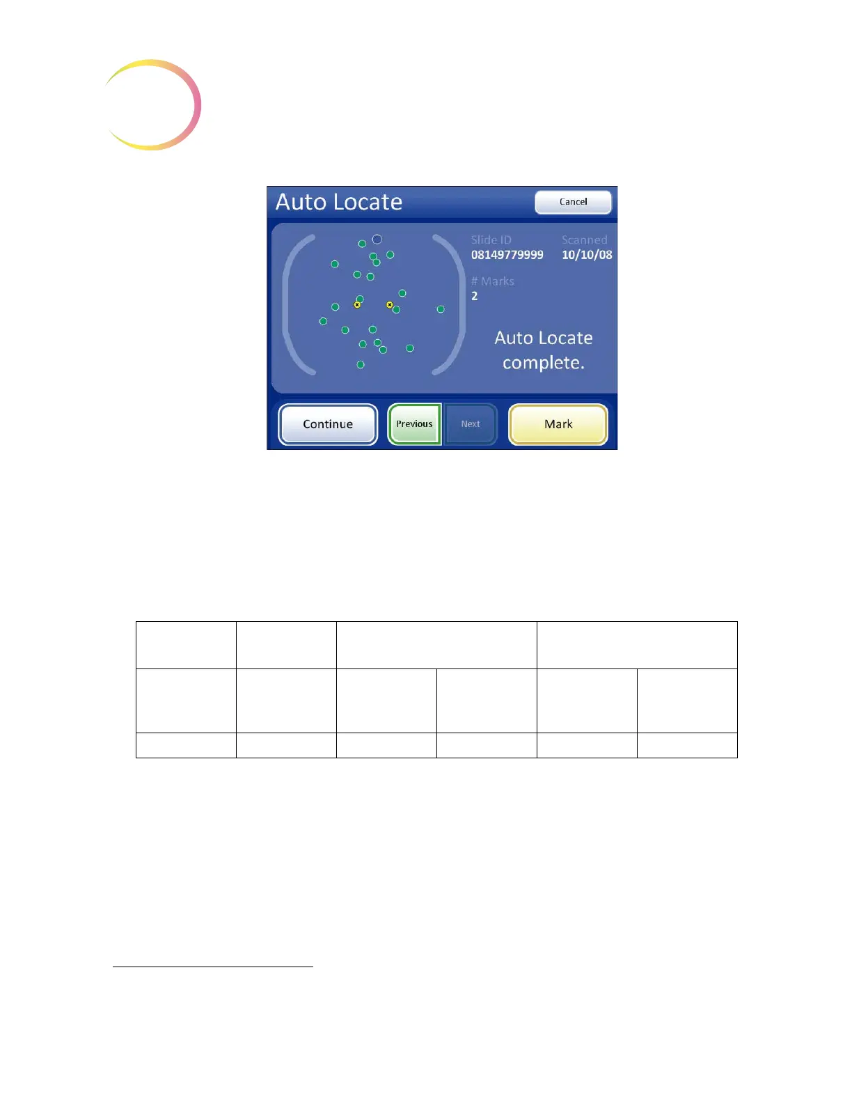 cell spot that includes the center. Dependent upon the microscope objective used, use the chart below