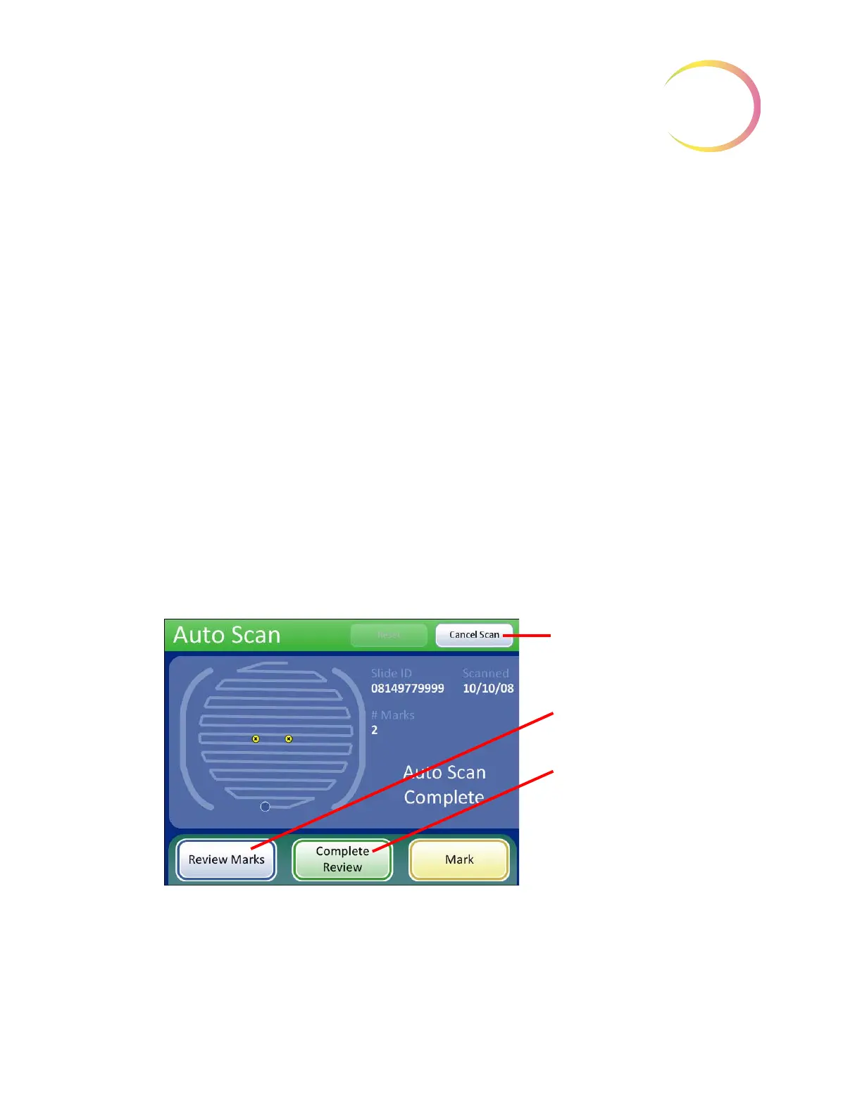 When the entire cell spot has been scanned, an audible beep will sound. To finish the review, touch