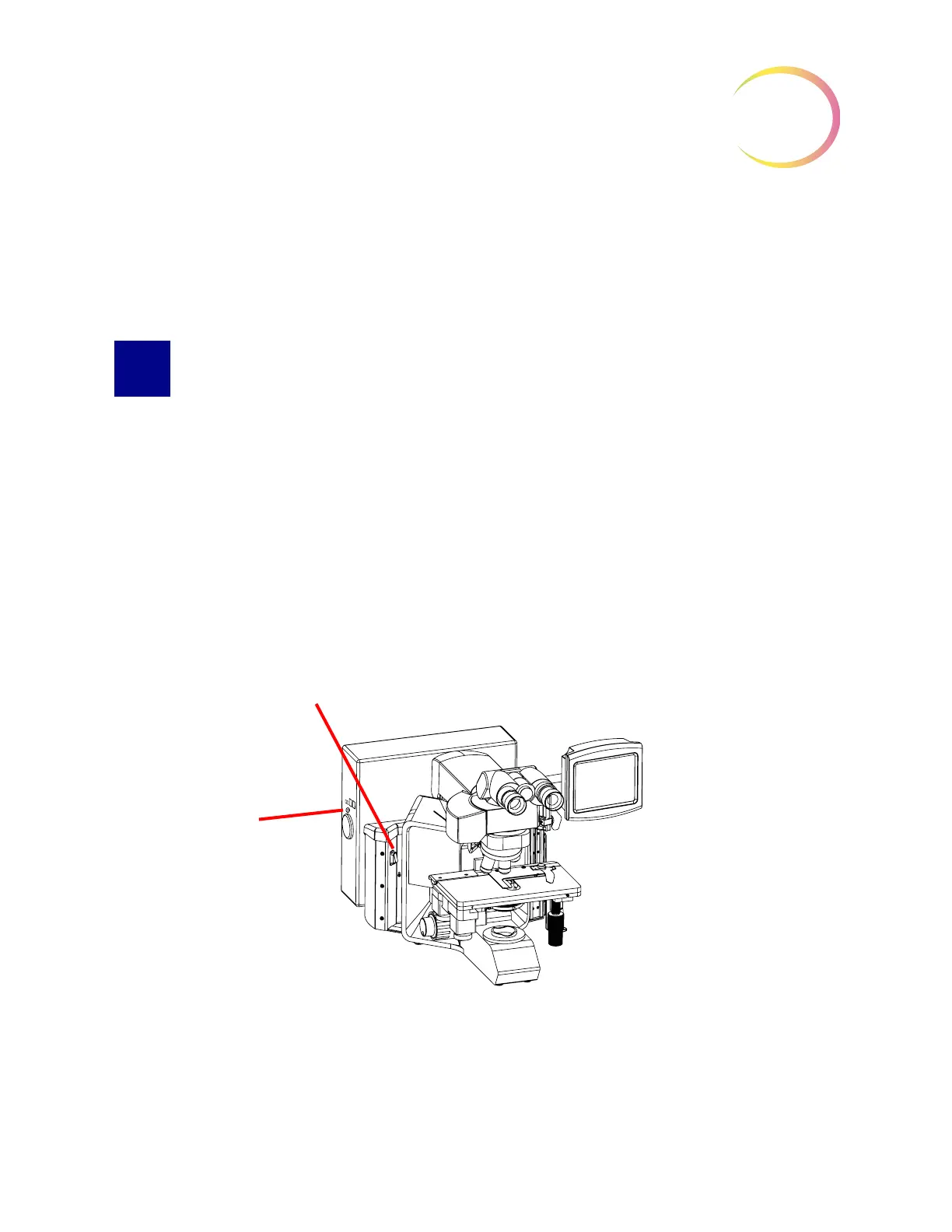 The power switch for the Integrated Imager is located on the back left of the microscope. Press the