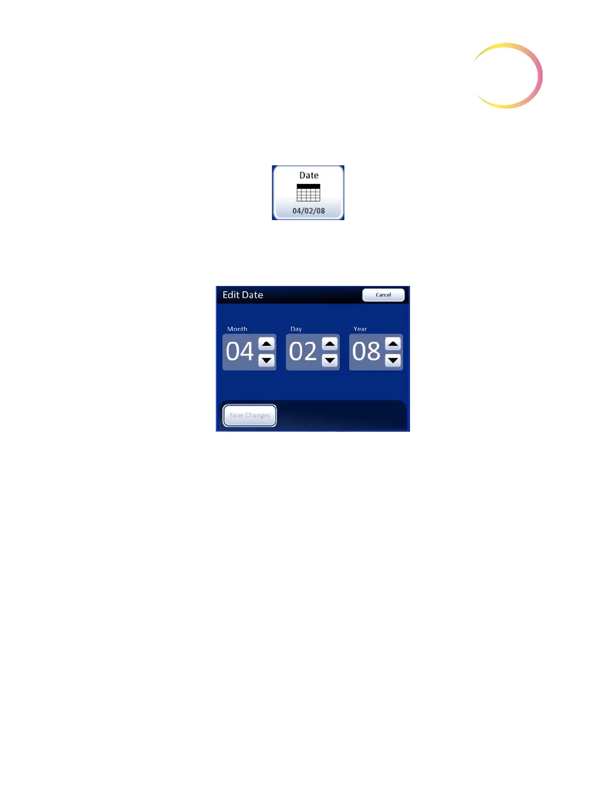 To change the date (month, day, year) touch the up/down button for that field until the desired value