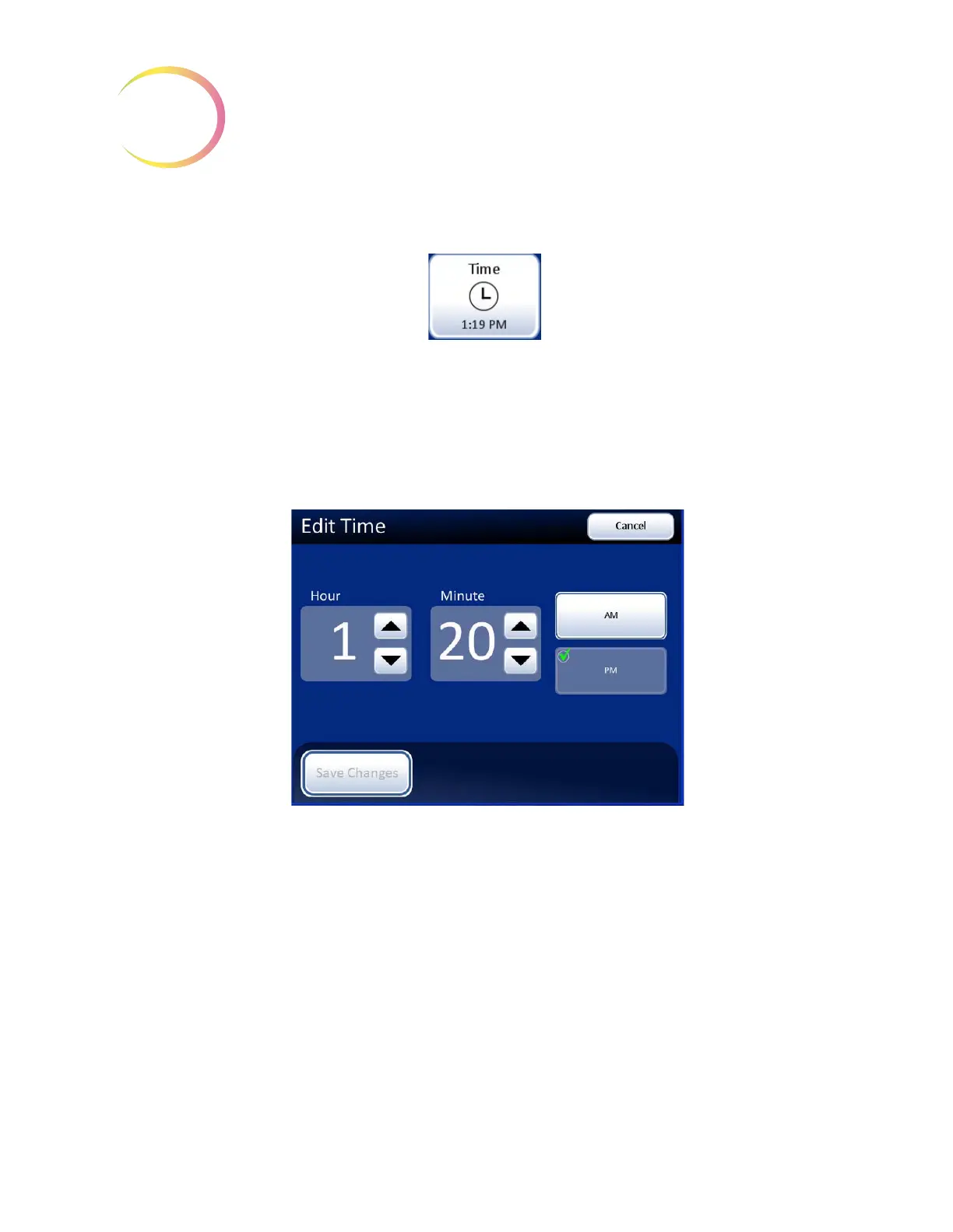 To change the time (hour, minute, meridian), touch the up/down button for that field until the