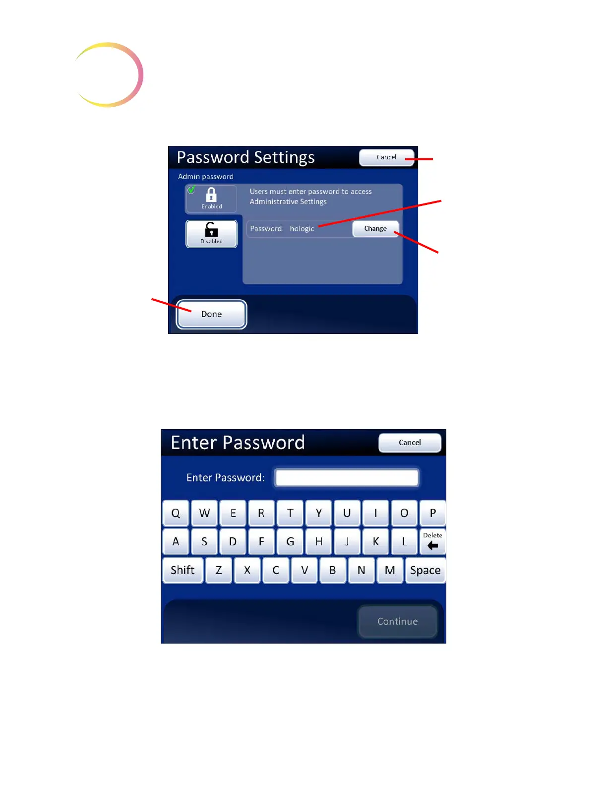 If the password is lost or forgotten, contact Hologic Technical Support (Chapter 7, Service