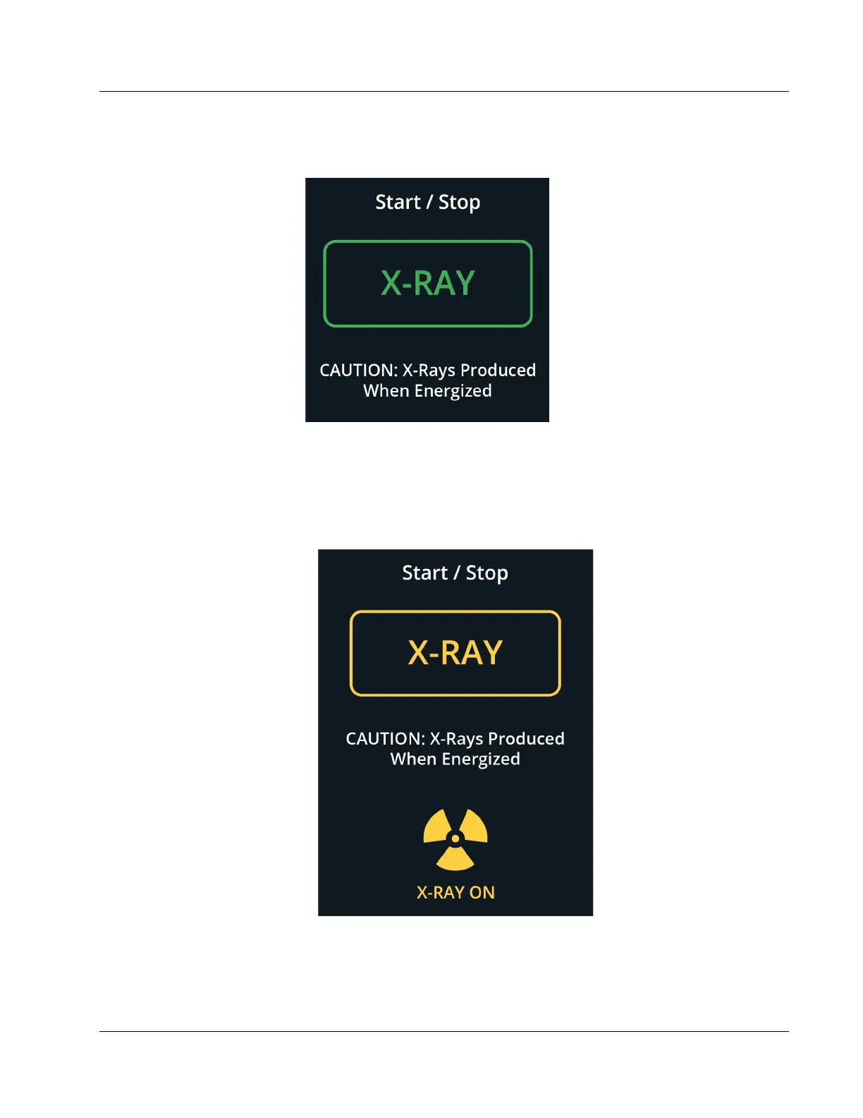 • The X-RAY button changes to yellow to indicate that the x-ray emission sequence