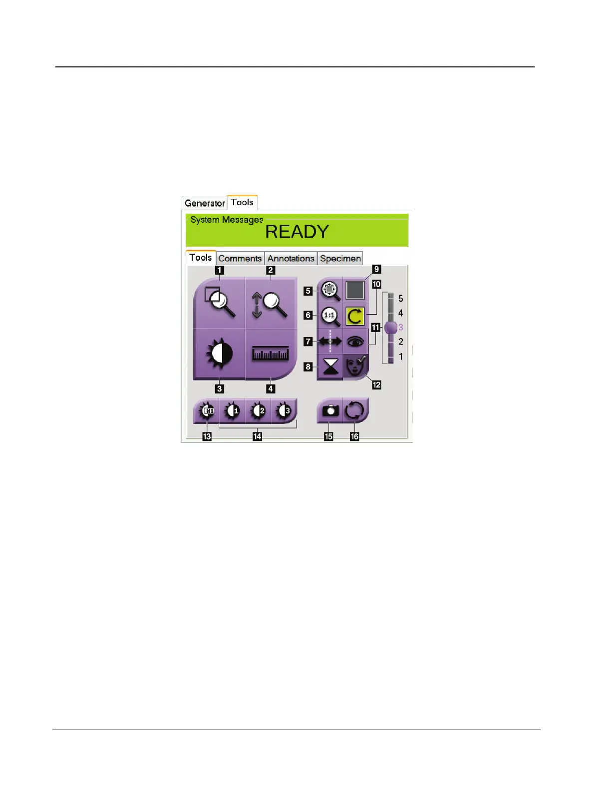 The Tools tab displays after an image is acquired. When you select the Tools tab, you have