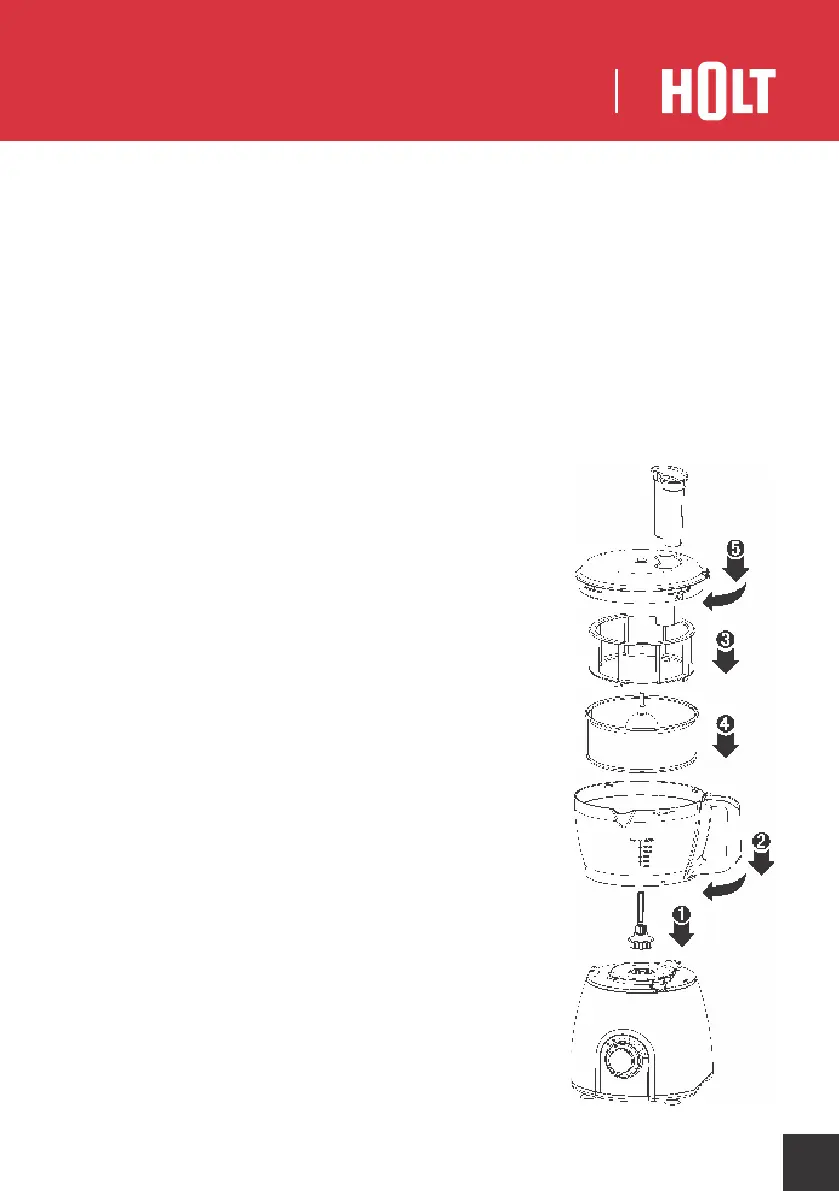 •Подсоедините основную чашу к корпусу кухонного комбайна и