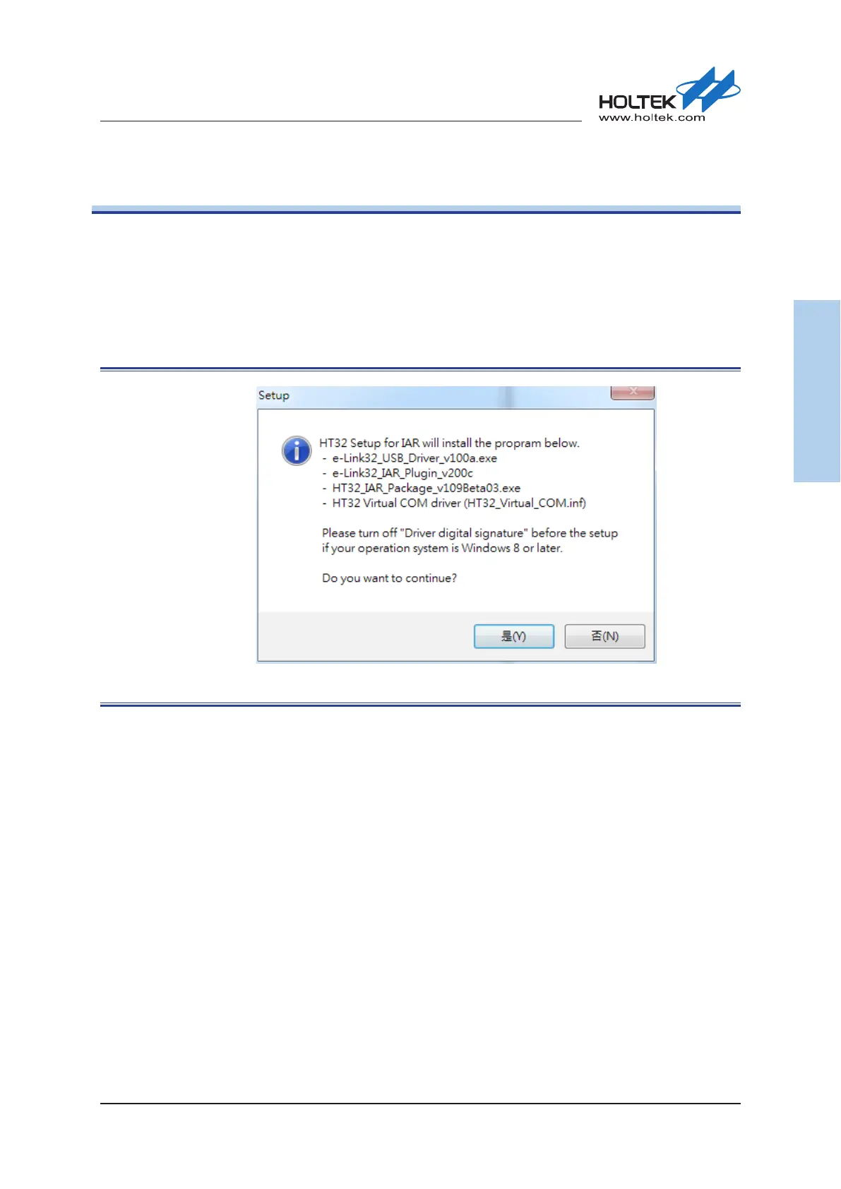 Double-click “HT32_Setup_IAR_vxx.exe” to open the IAR Boot program and press the “Yes”