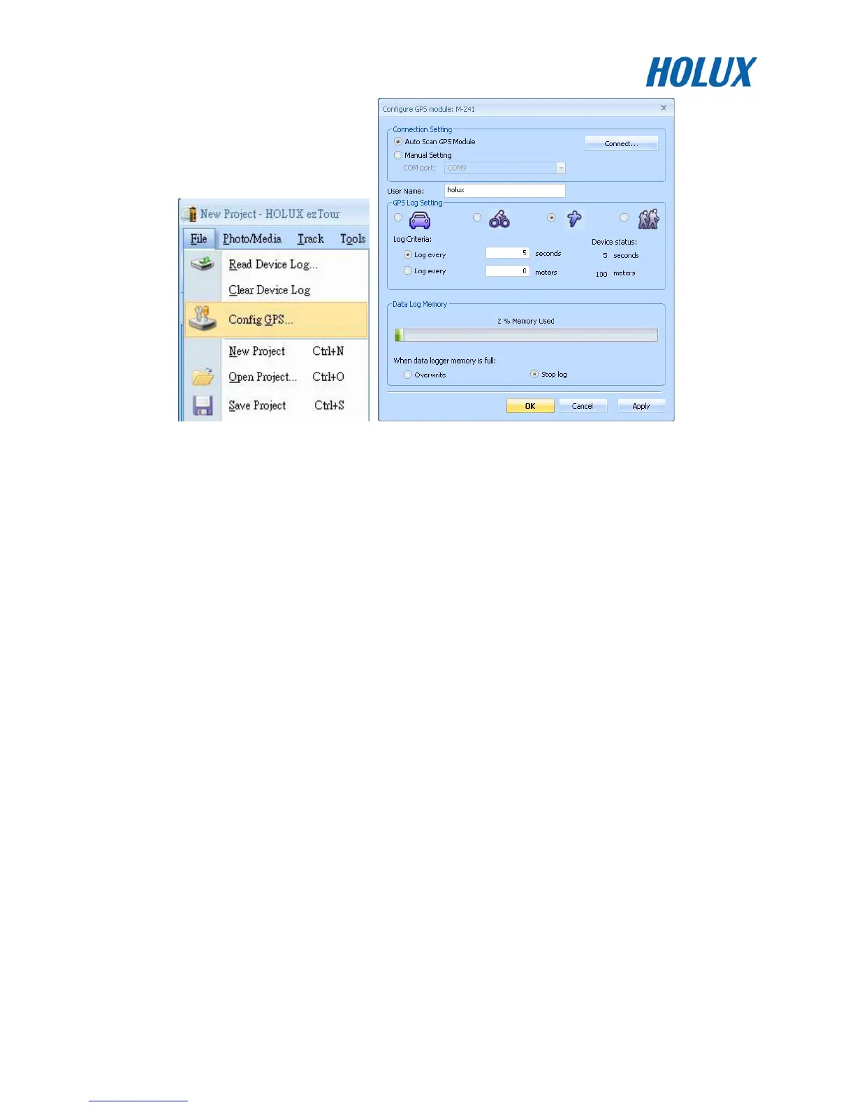 5. The logger can be set to record by a set time or set distance. The conditions for recording can be set