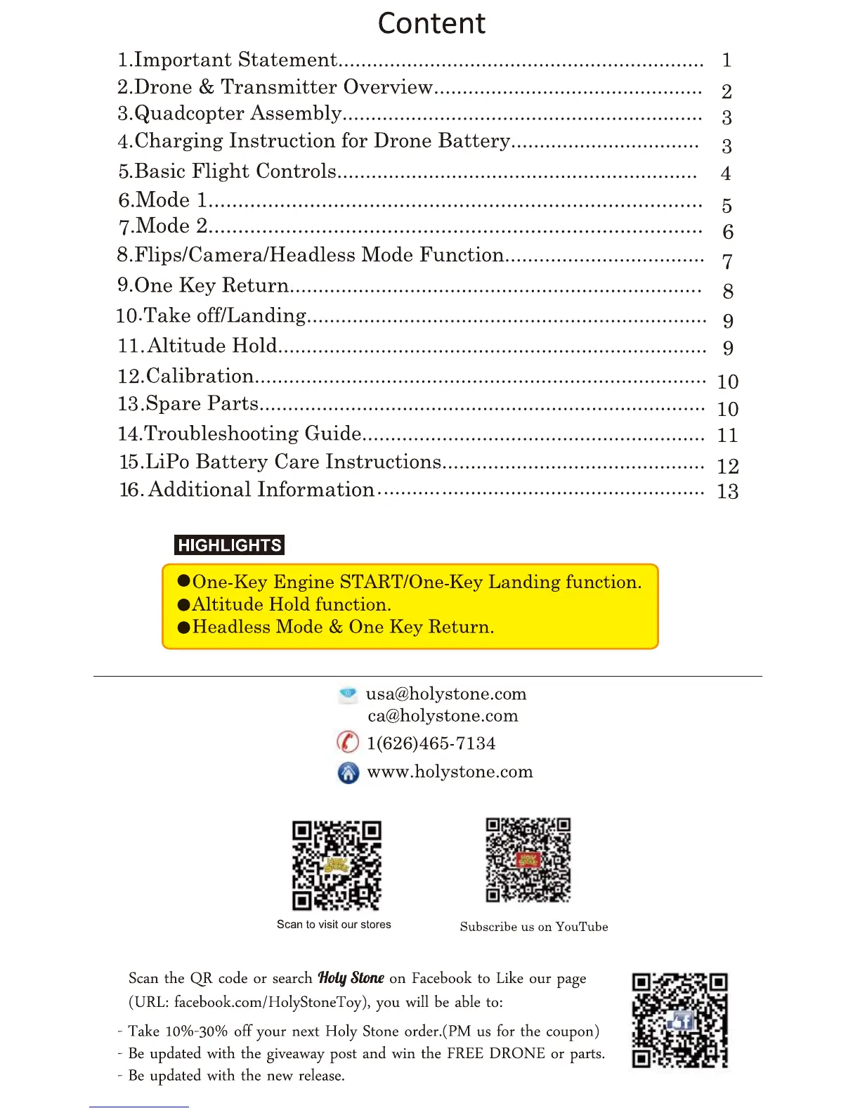 Holy Stone F181 - Contents
