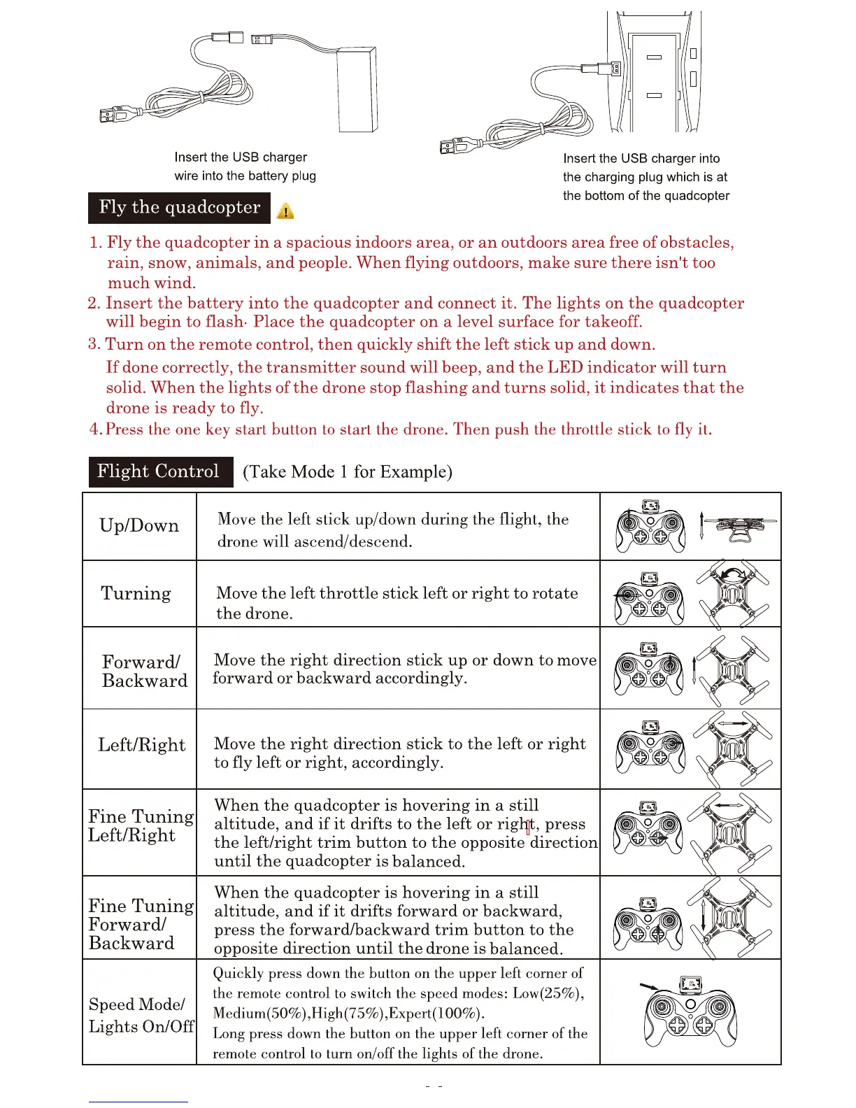 Holy Stone F181 - Flight Control; Up;Down Control; Turning Control; Forward;Backward Control