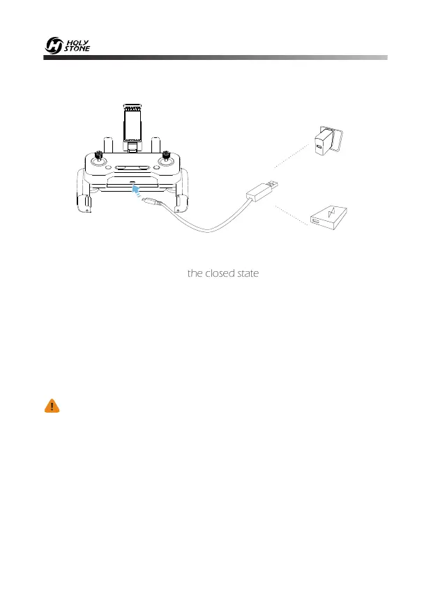 ① Please charge the battery in the closed state. Connect the Transmitter to