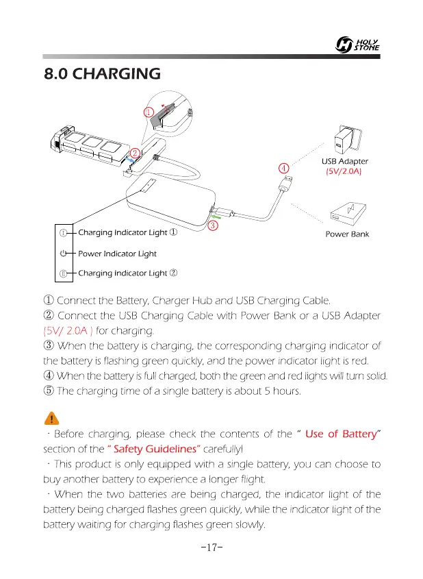 0 Connect the Battery, Charger Hub and USB Charging Cable.