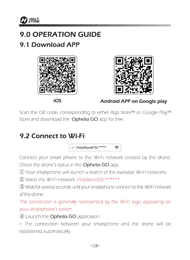 0 Select the Wi-Fi network: HolyStoneEIS-******.