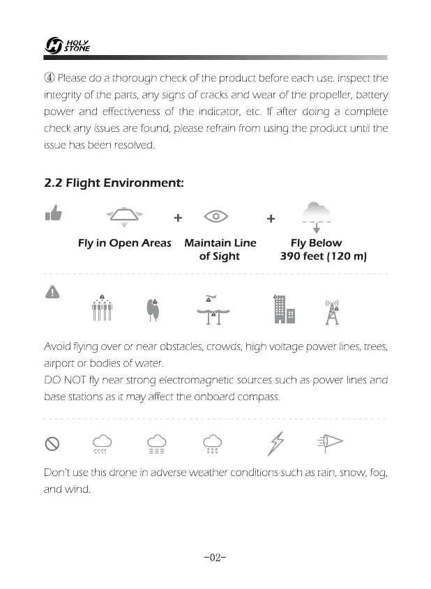 Avoid flying over or near obstacles, crowds, high voltage power lines, trees,