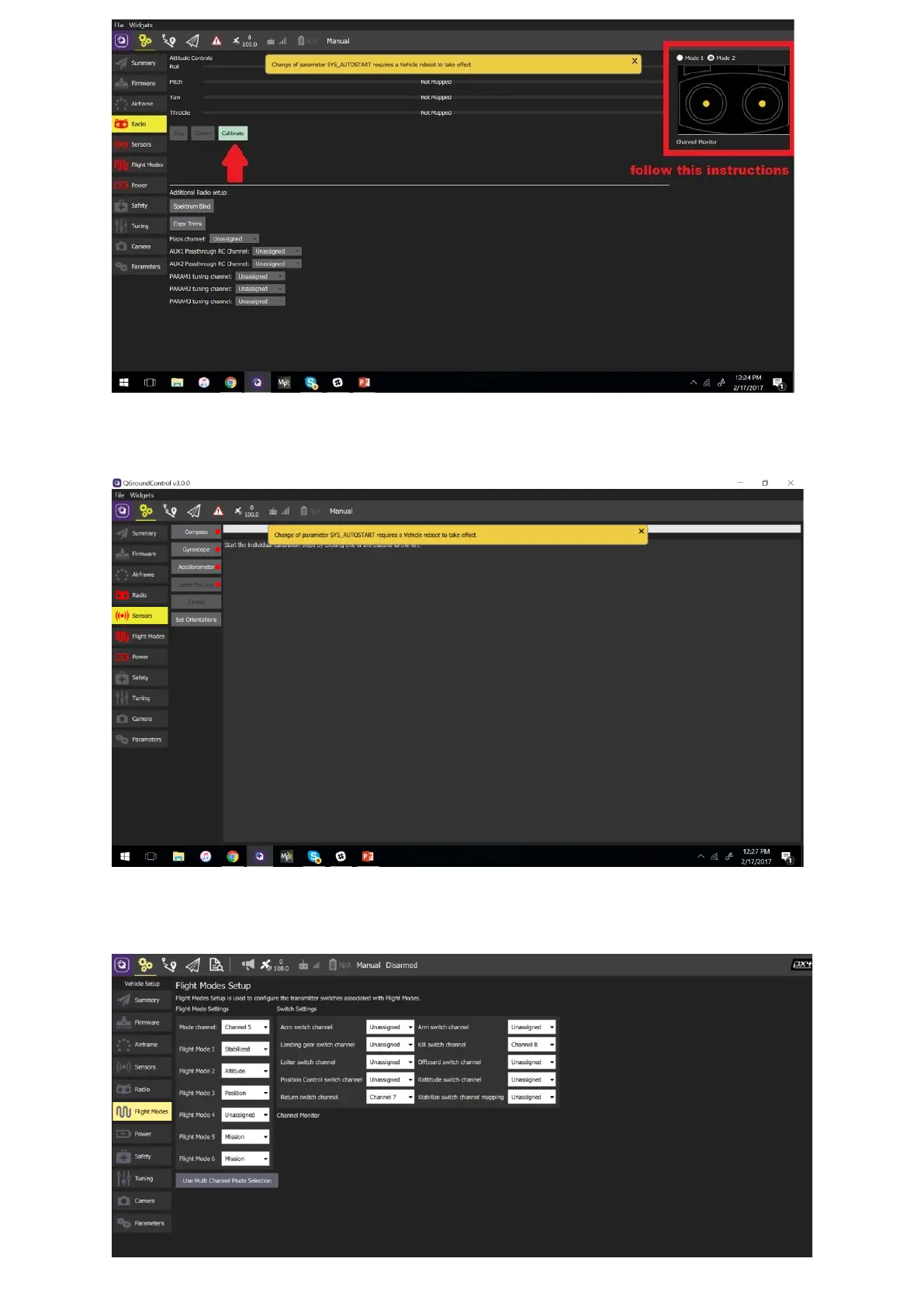 Holybro Pixhawk 4 S500 V2 Basic Kit - Radio Transmitter Calibration; Calibrate Onboard Sensors; Configure Flight Modes