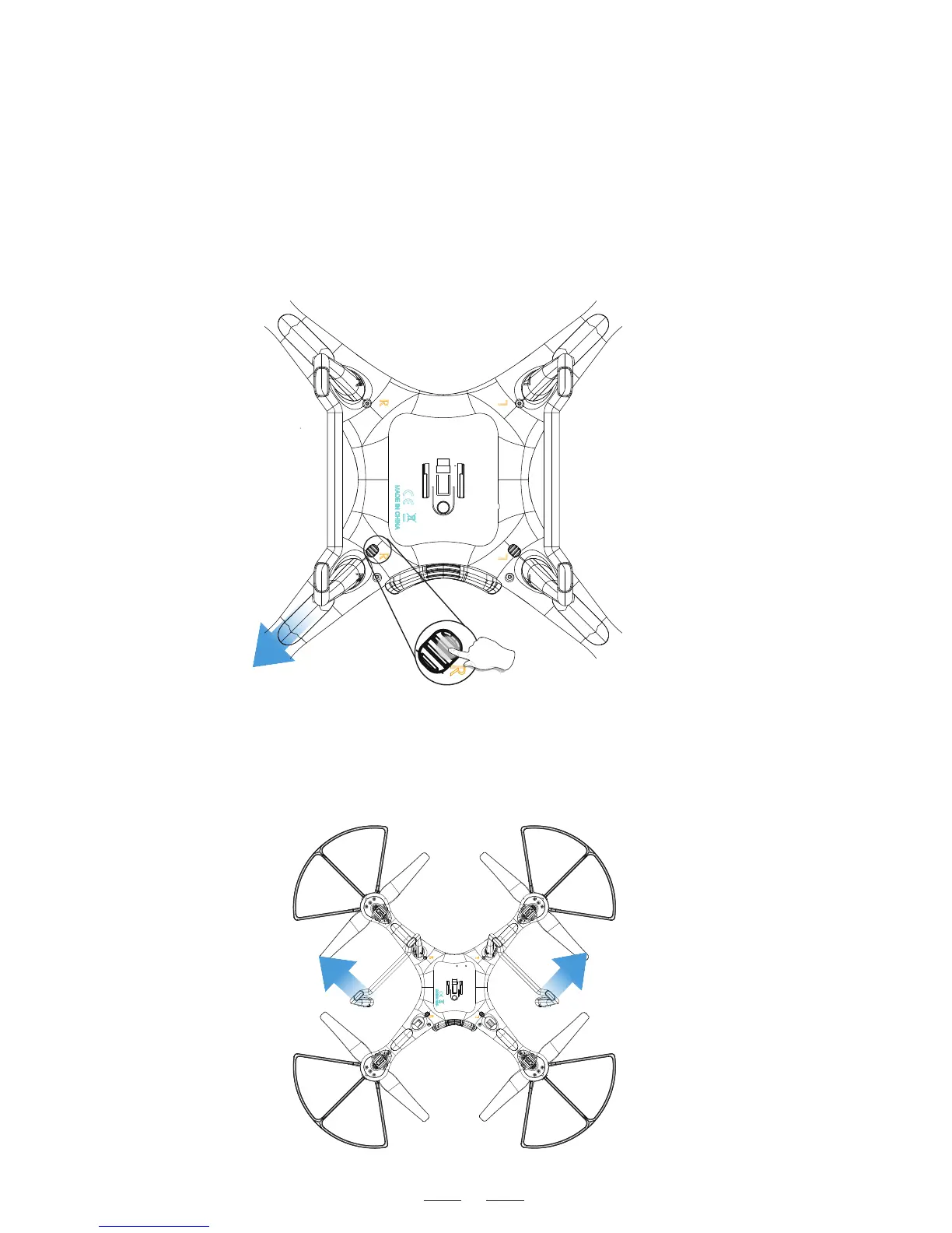 3)Rotate landing gears outside at angle of about 90 degrees to