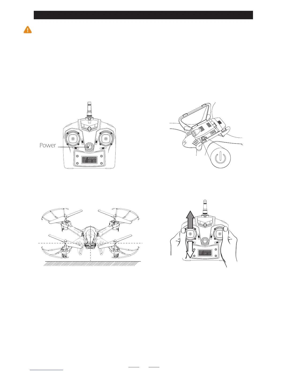 ② Power on the drone.① Power on the transmitter.