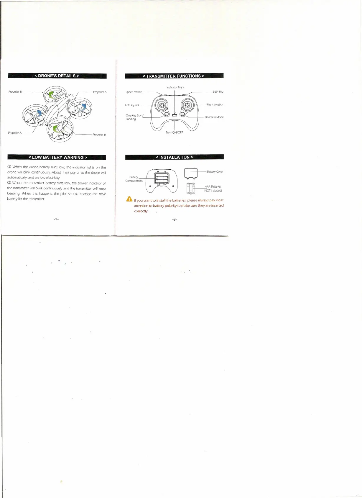 attention to battery polarity to make sure they are inserted