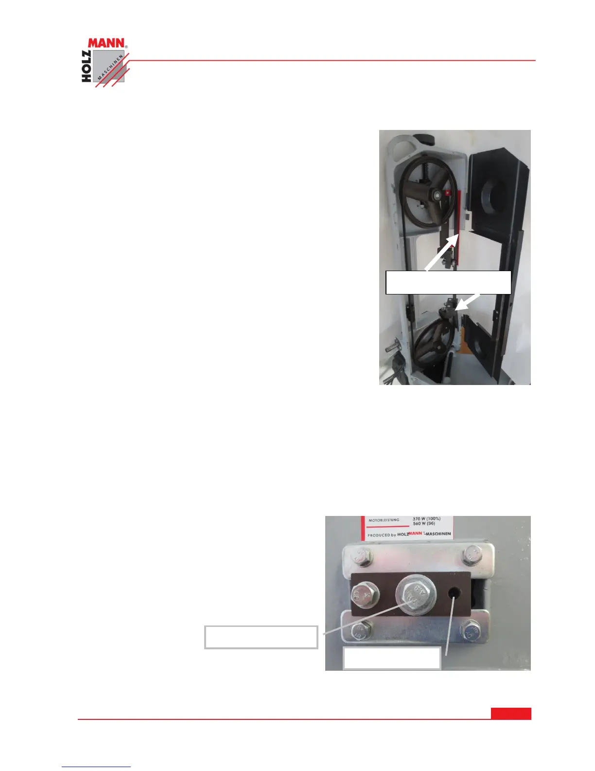 Sägebandschutzbleche oben (rot) und unten abschrauben.