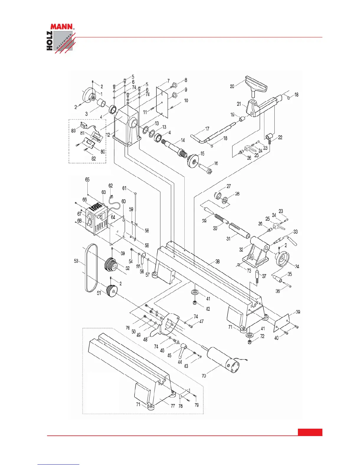 Holzmann D 460FXL - Machine Parts Identification; Exploded View of Machine Parts