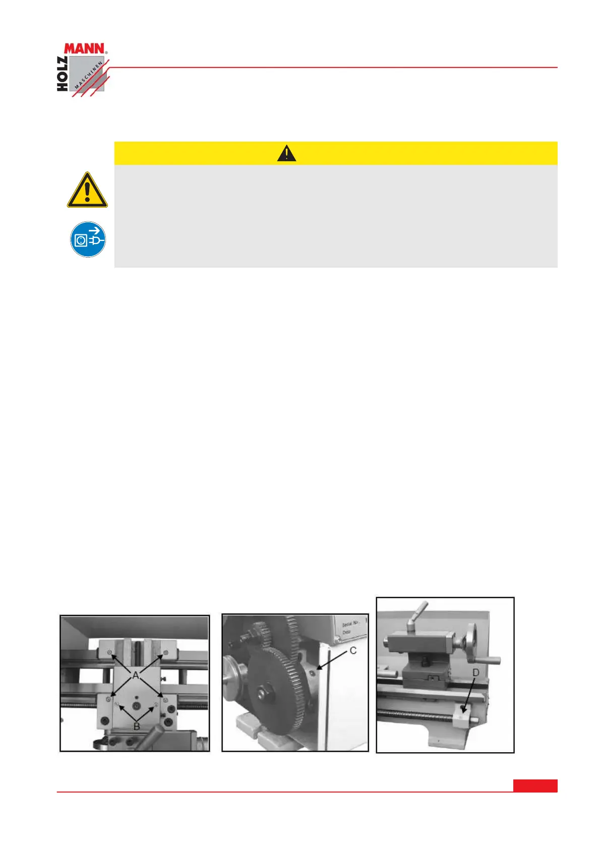 Vor Wartungsarbeiten Maschine ausschalten und von der Spannungsversorgung trennen